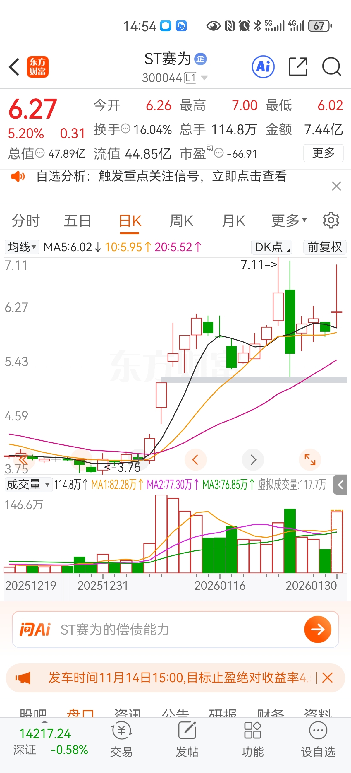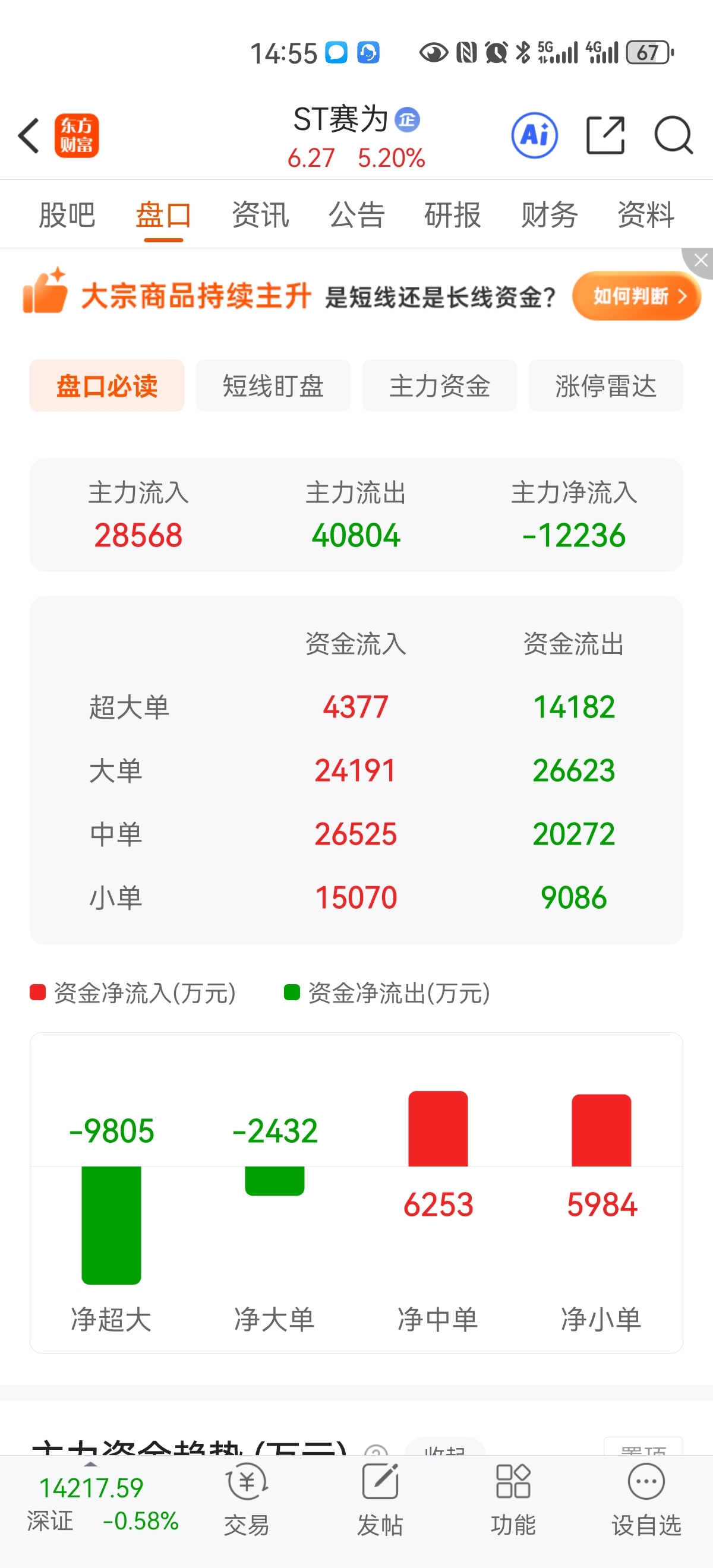 $ST赛为(SZ300044)$ 六个交易日里,两天跳水超过10个点,一天跳水超22个点。净流出三个亿。散户还敢接盘。真是不怕死。