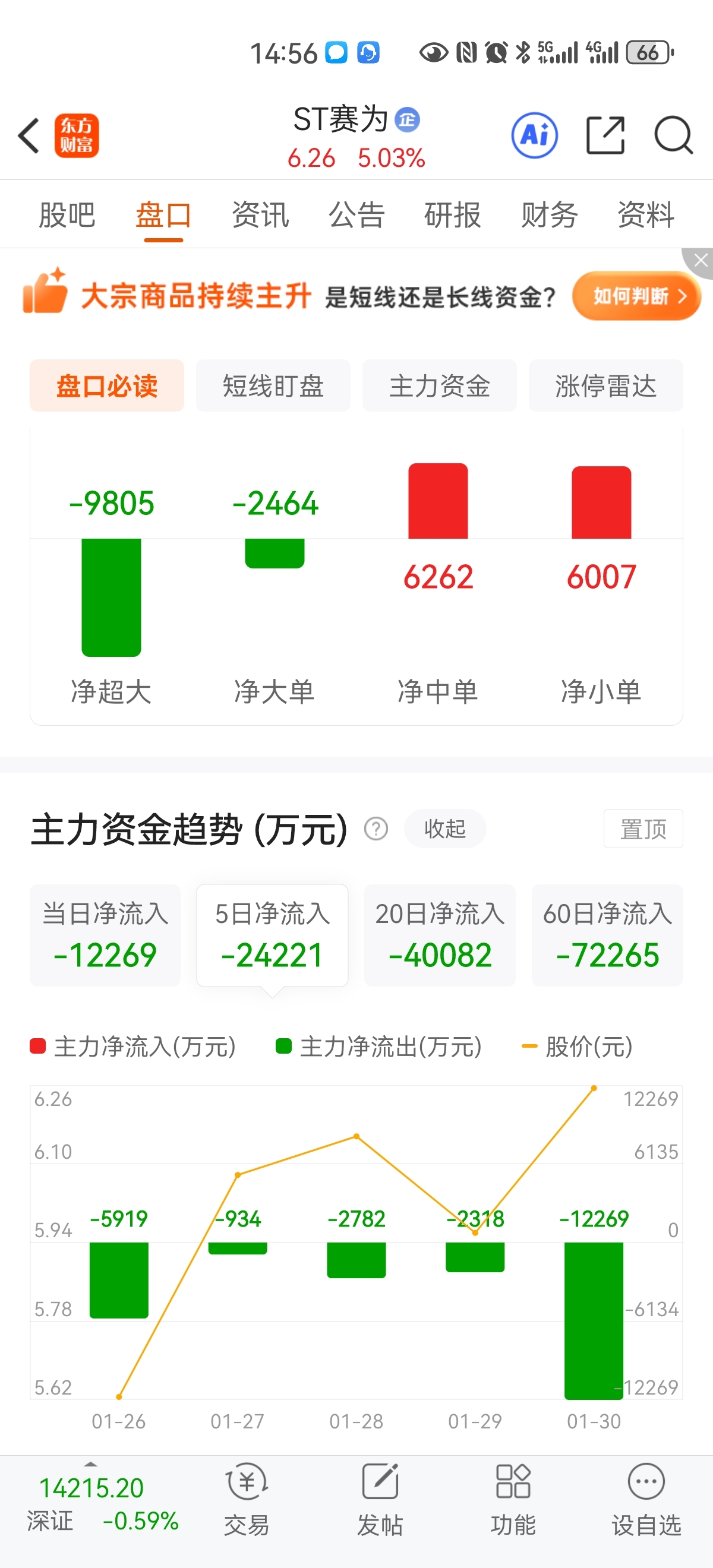六个交易日里,两天跳水超过10个点,一天跳水超22个点。净流出三个亿。散户还敢接