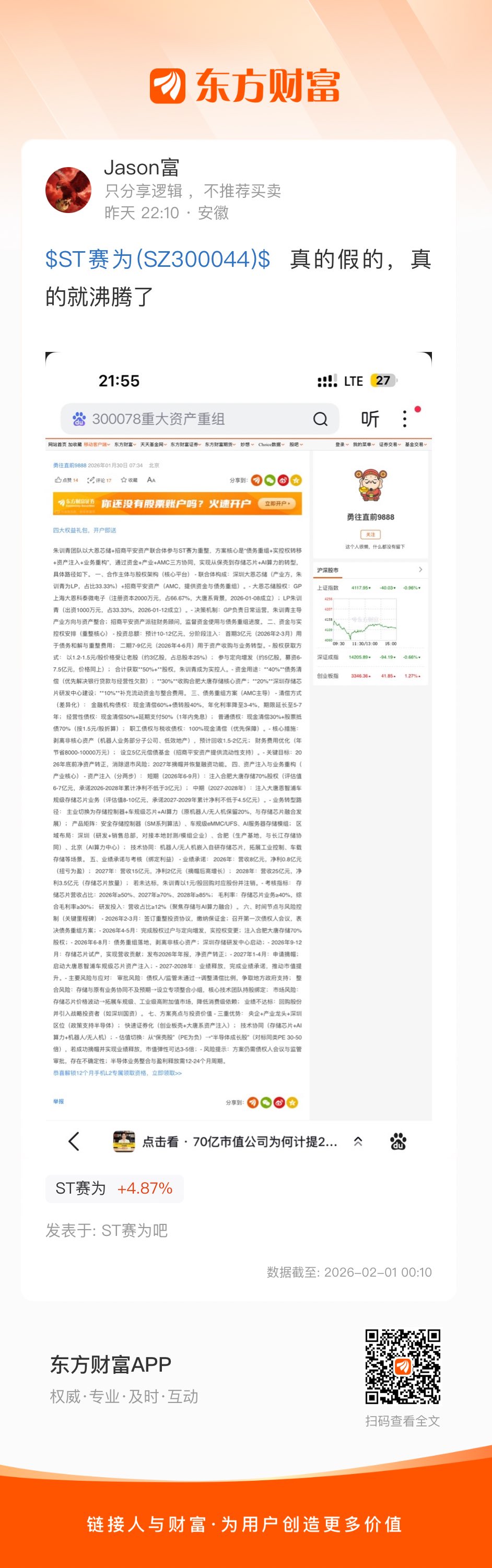 $ST赛为(SZ300044)$  真的假的,真的就沸腾了