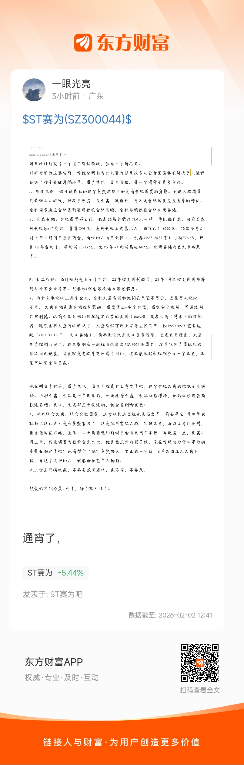 温馨提示: 1.根据《证券法》规定,禁止编造、传播虚假信息或者误导性信息,扰乱证券市场;2.用户在本社区发表的所有资料、言论等仅代表个人观点,与本网站立场无关,不对您构成任何投资建议。用户应基于自己的独立判断,自行决定证券投资并承担相应风险。《东方财富社区管理规定》