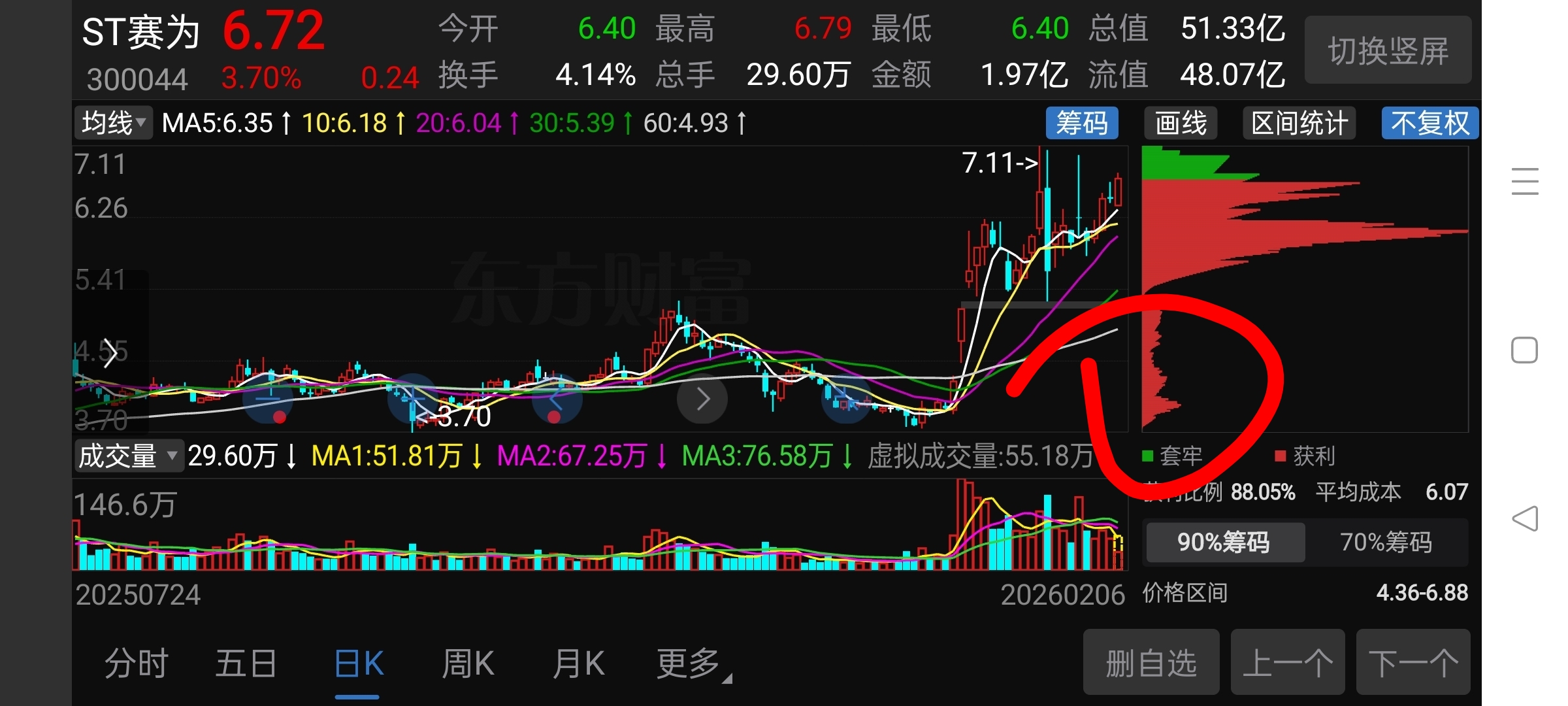 $ST赛为(SZ300044)$ 看好的人还不少,筹码很稳定!