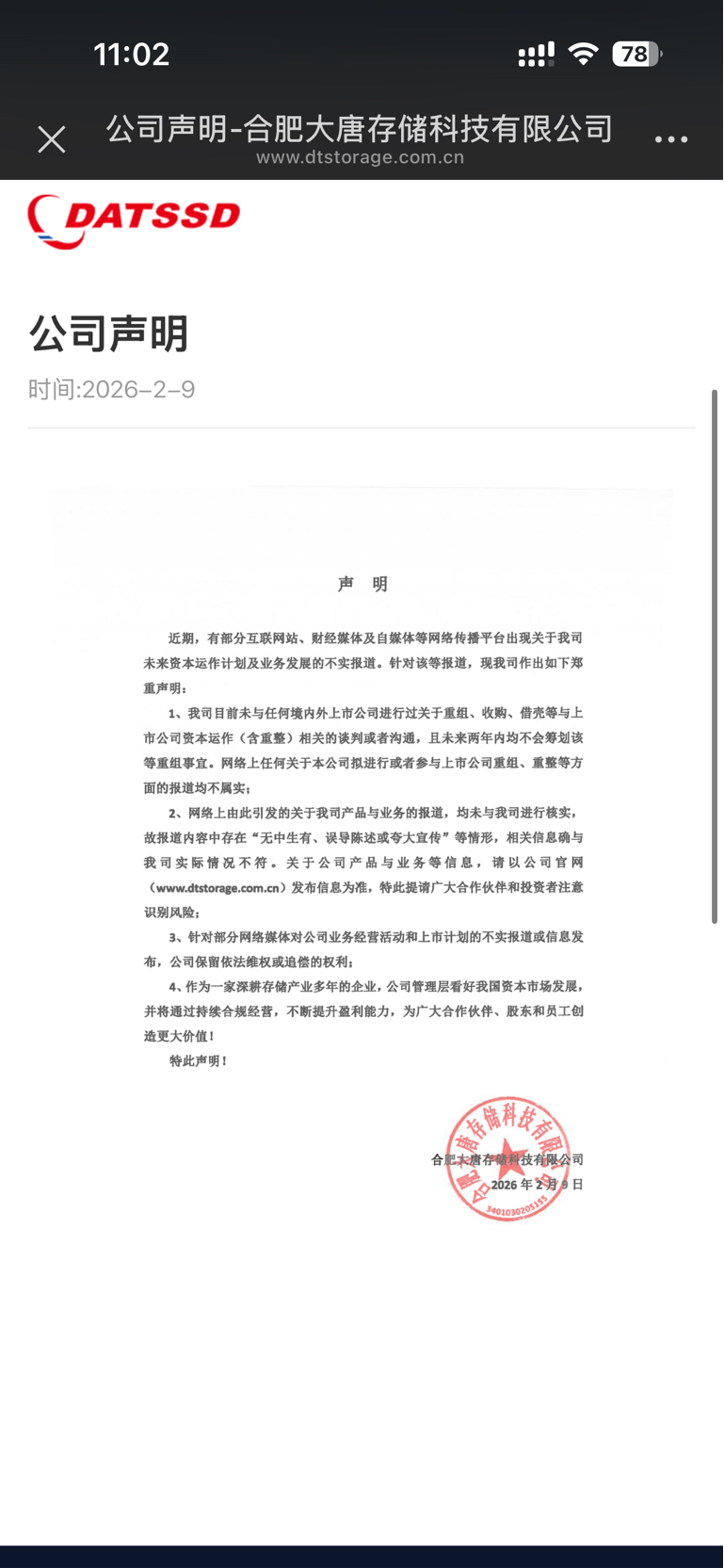 今天看了一条公司发的声明