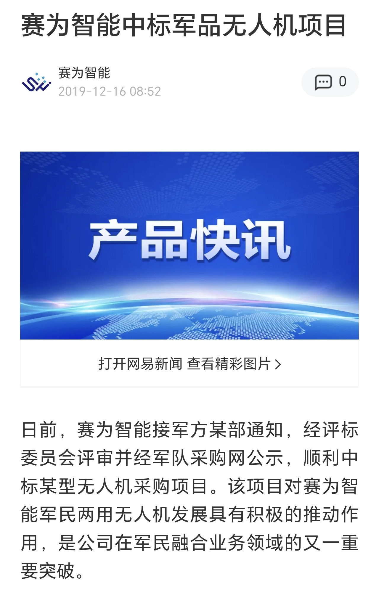 赛为智能居然还有军工(无人机)概念,2019年就接单了,老牌公司啊,谁接手肯定是