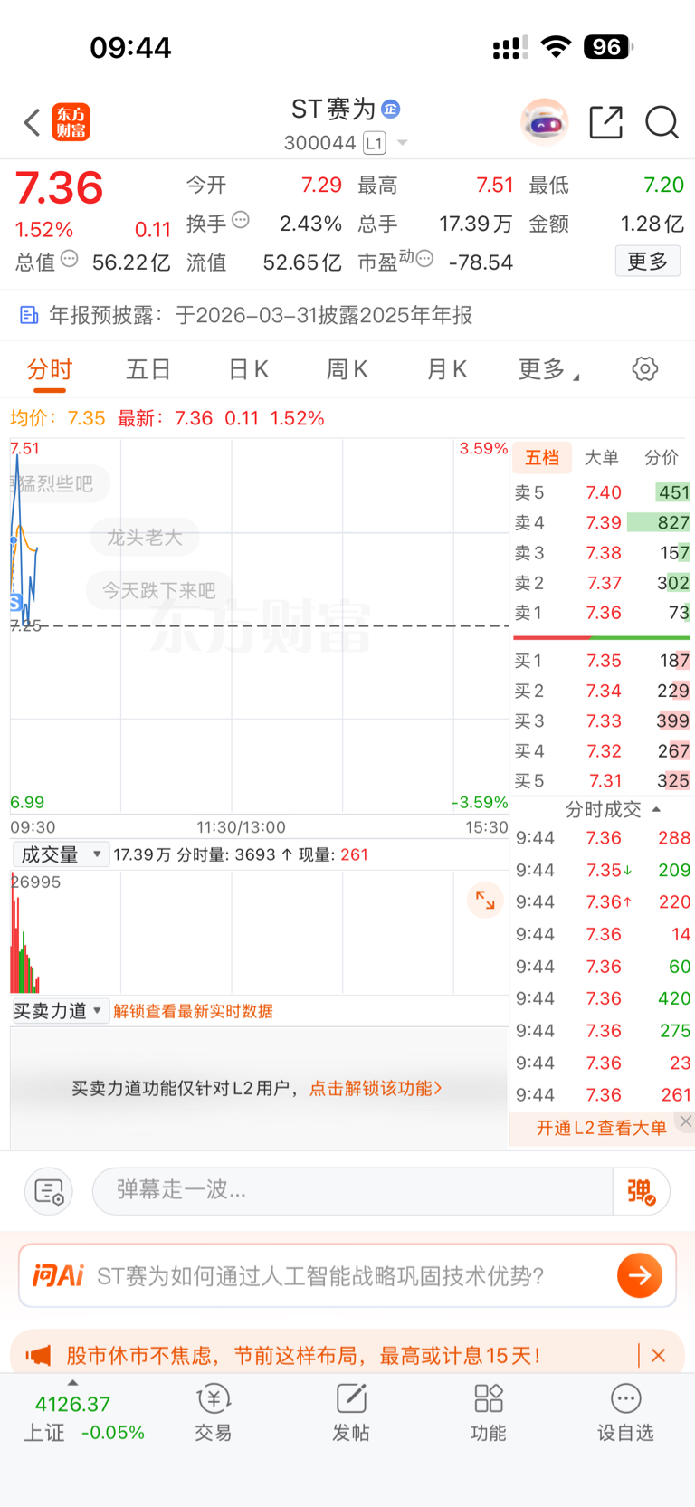 $ST赛为(SZ300044)$ 没守住