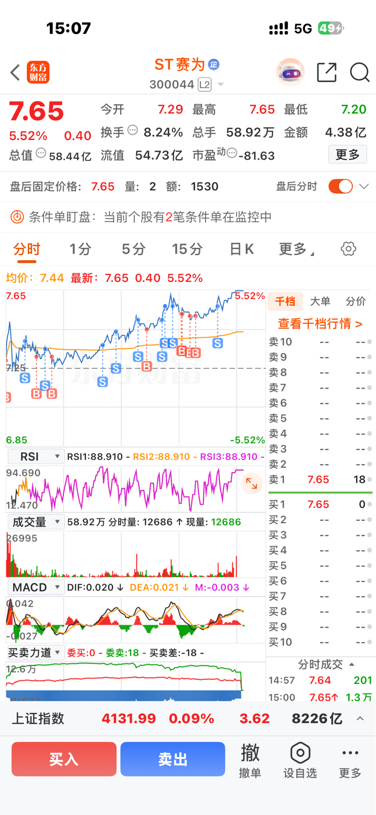 $ST赛为(SZ300044)$ 好股就是不涨停,涨不停,边涨边T。节奏飞起