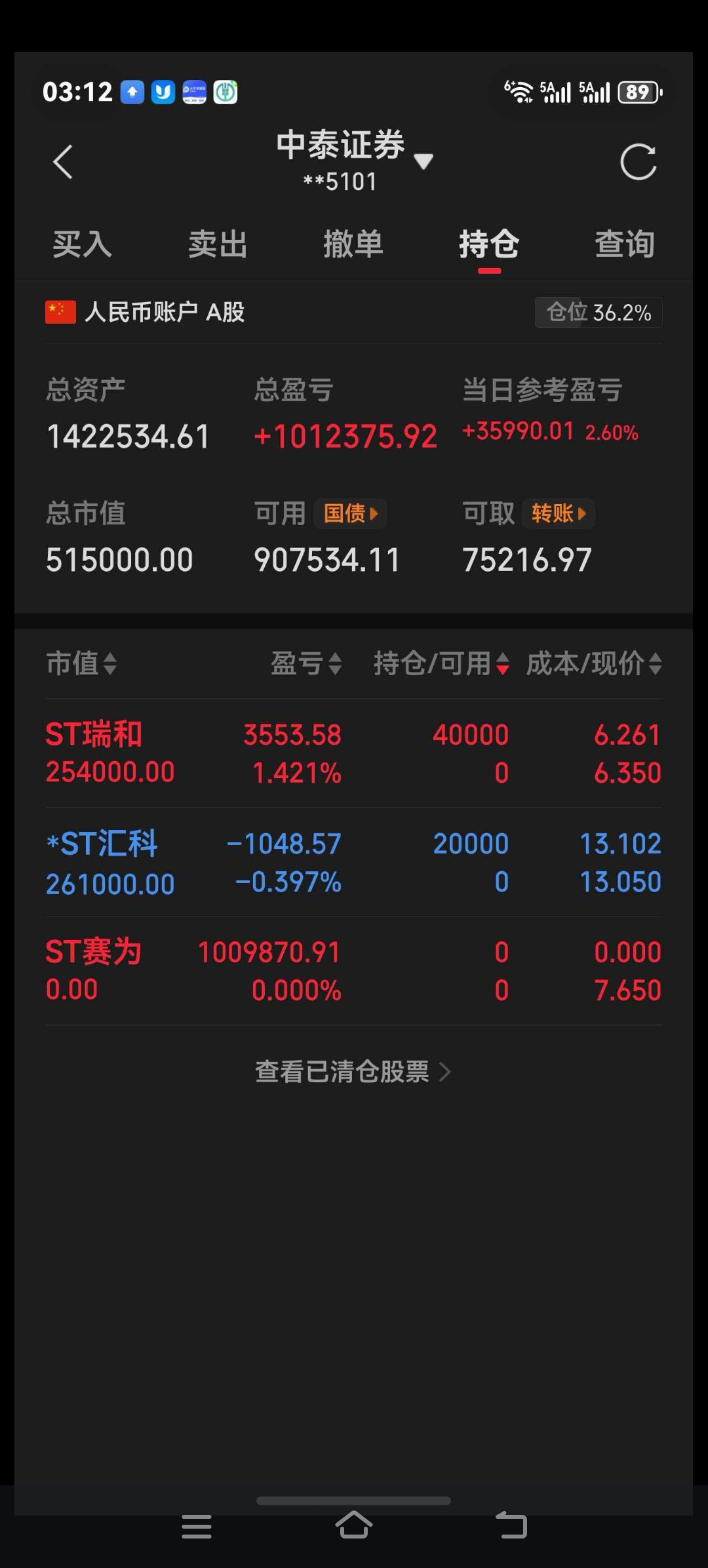 感谢赛为的新年礼包,我愿它涅槃重生,重塑辉煌。我今天彻底清仓了,转出五成本金,年
