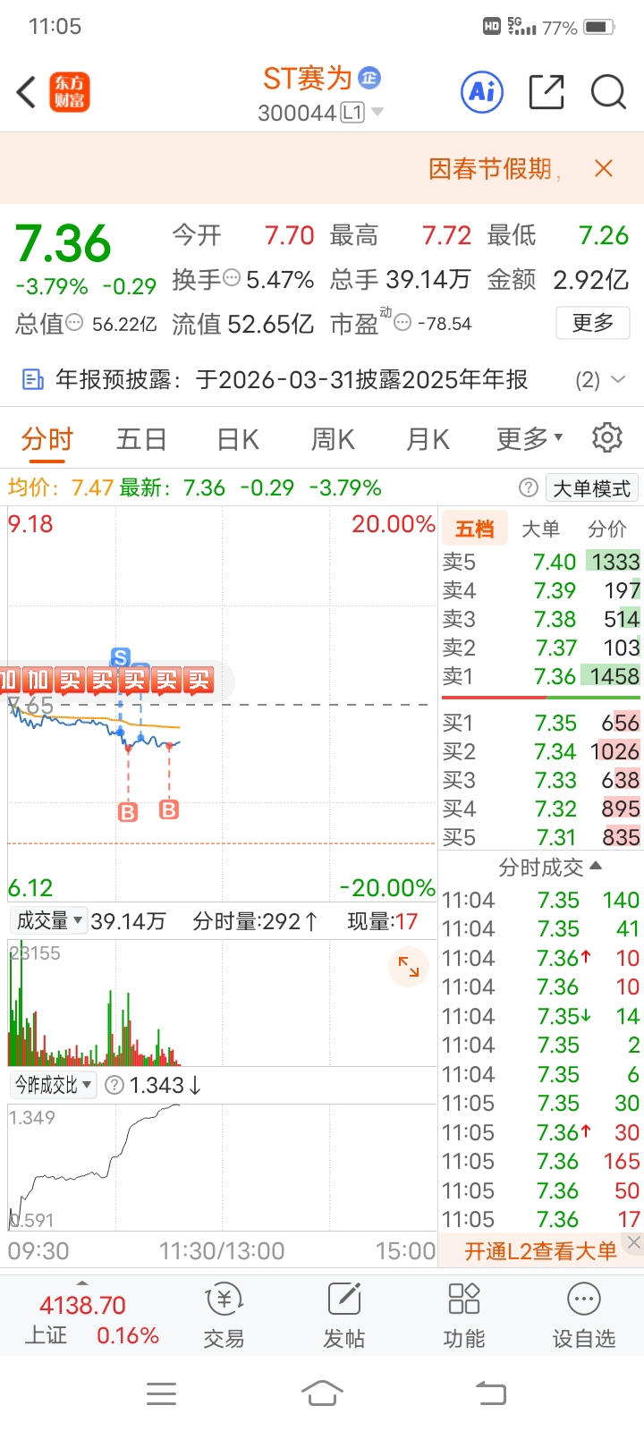 $ST赛为(SZ300044)$ 谁说不能T?T了5500元到手。
