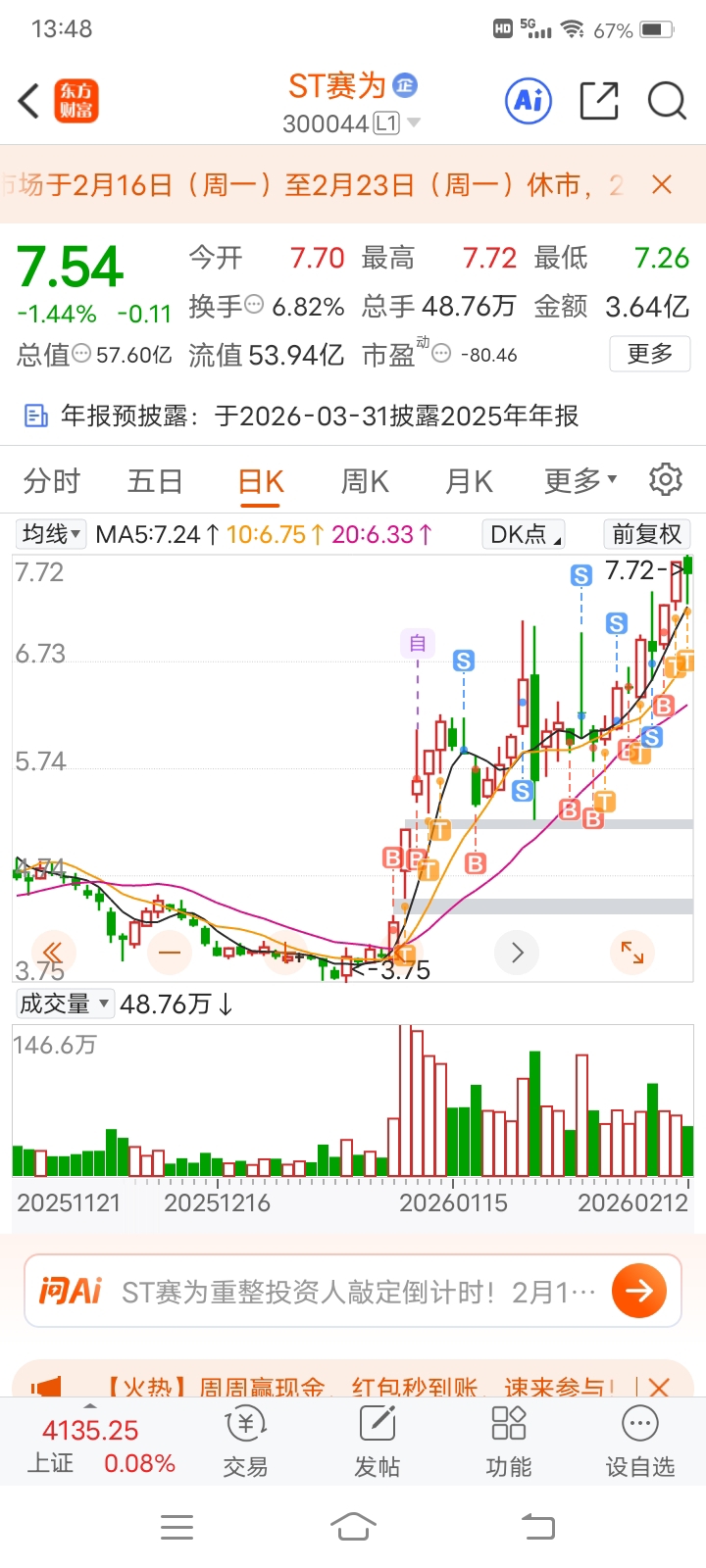 $ST赛为(SZ300044)$ 打工?打工是不可能的,做生意又不会,也只能靠买卖赛为做做T来维持生活!