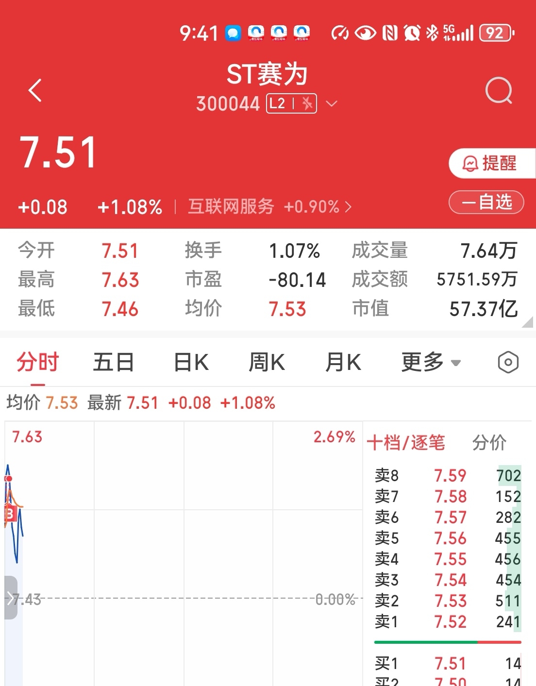 $ST赛为(SZ300044)$ 开盘就买入了!耐心等待花开