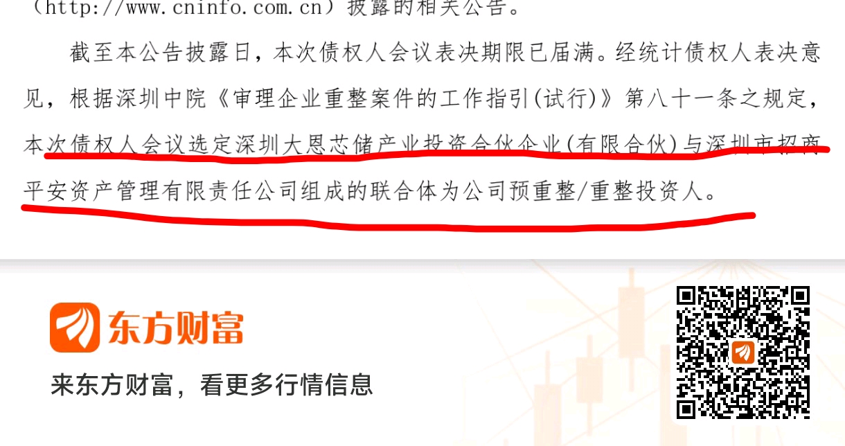 划重点:本次债权人会议选定深圳大恩芯储产业投资合伙企业(有限合伙)与深圳市招商平