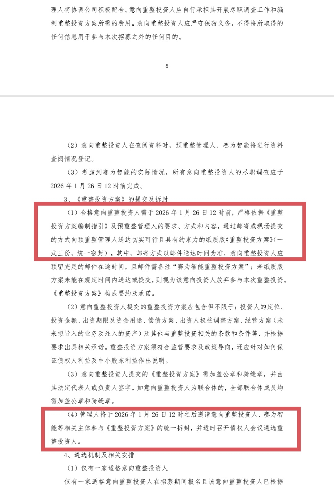 重整投资方案1月26日就已经编制完成,很可能2月23日或24日发布!