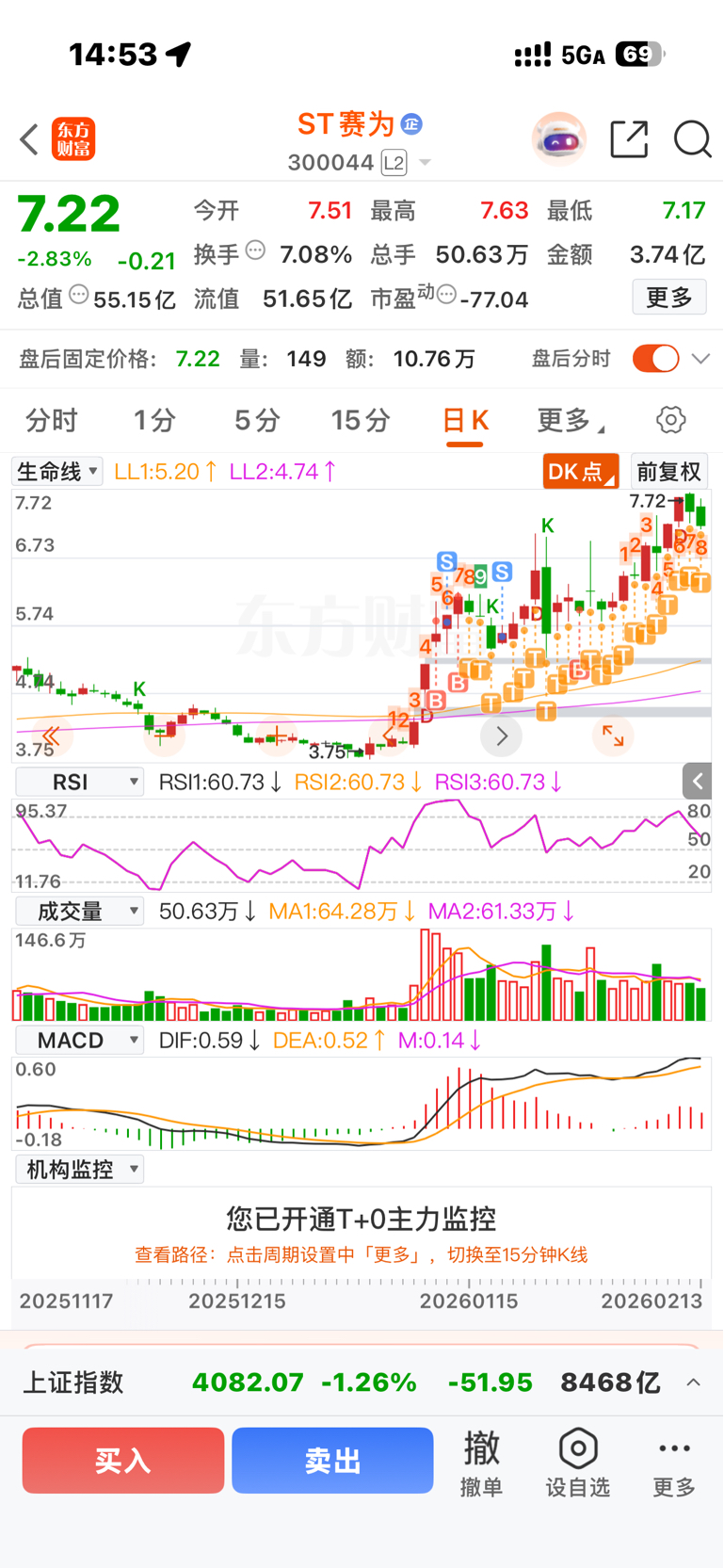 $ST赛为(SZ300044)$ 任它东西南北风,边涨边T最轻松。。。今天迎财神,初八