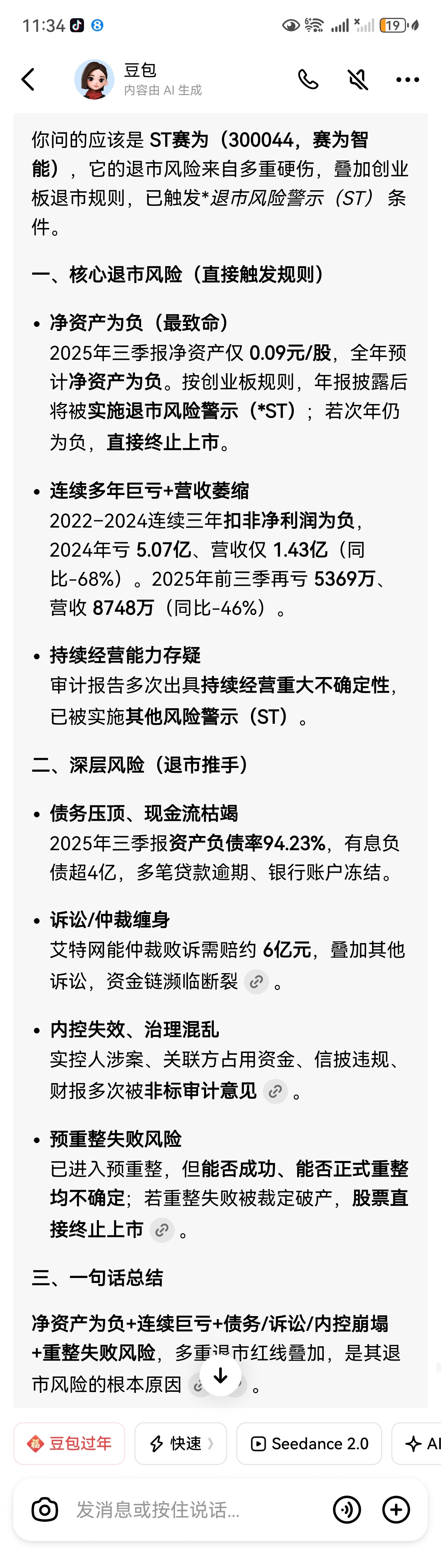 $ST赛为(SZ300044)$ 给某些人泼点凉水,免得有天退市了,还不清醒。论退市的速度,赛为可能来的更突然,比立方还要快。
