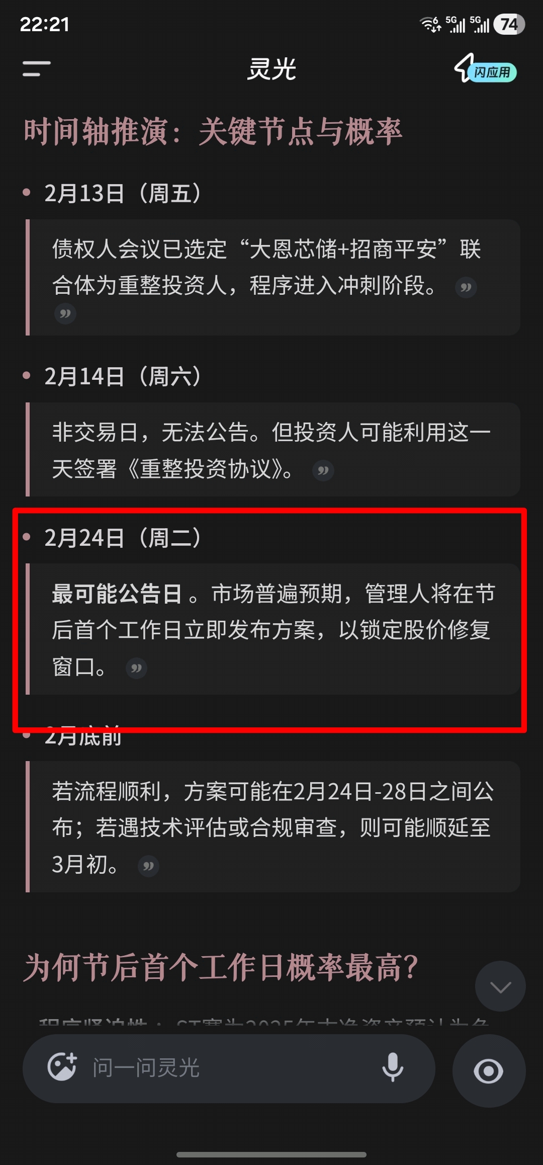 节后第一个工作日发布重整方案概率很大