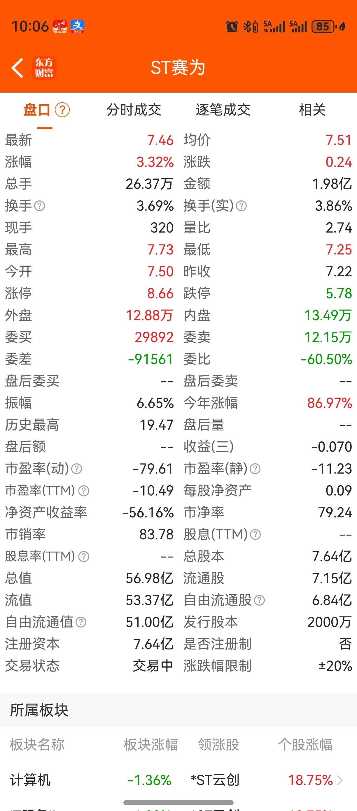 $ST赛为(SZ300044)$ 委卖有点多啊