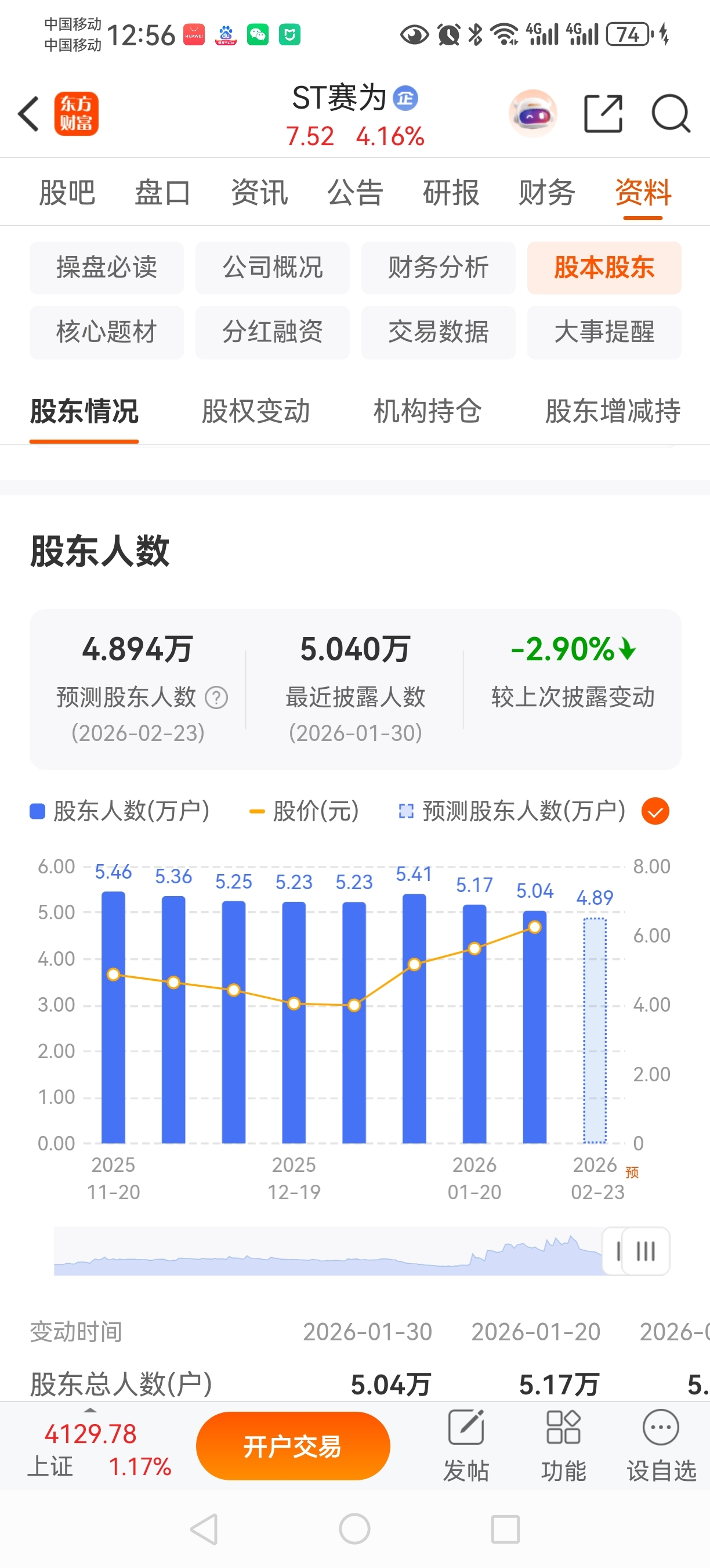 $ST赛为(SZ300044)$ 又少了1500个散户