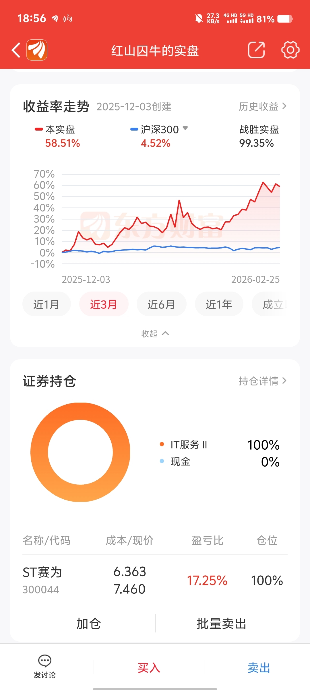 坚定,一股没卖,一股没T。收益率超过99%的股民。满仓单吊成就牛散。