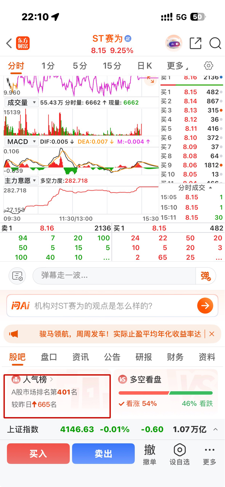 $ST赛为(SZ300044)$ 今天人气榜反弹飙升了,明天更多人关注,叠加重整协议随时公告的预期。明天估计又是可以继续加仓做T的好行情