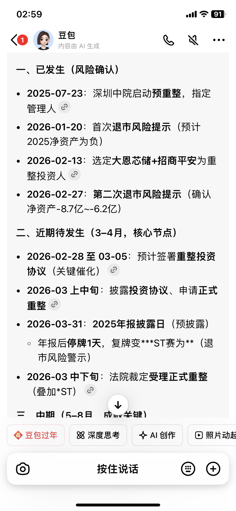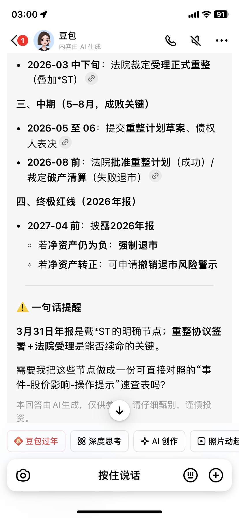 $ST赛为(SZ300044)$ 为什么今天冲高回落,原来是要出第二次预警,确定这3月底后带*是板上钉钉了,借此机会再洗一下,既然带已经确定了,还有什么怕的,就等协议吧