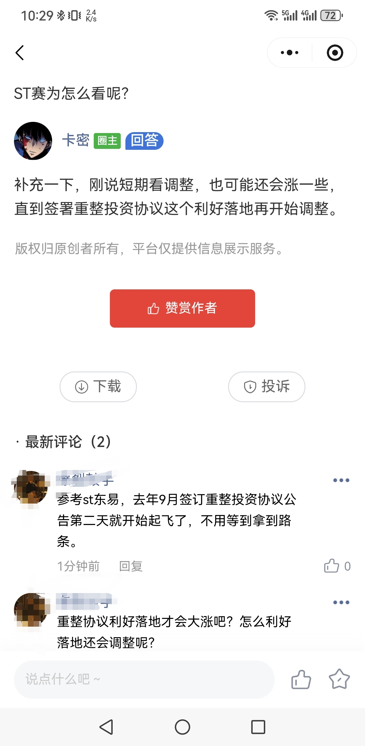 温馨提示: 1.根据《证券法》规定,禁止编造、传播虚假信息或者误导性信息,扰乱证券市场;2.用户在本社区发表的所有资料、言论等仅代表个人观点,与本网站立场无关,不对您构成任何投资建议。用户应基于自己的独立判断,自行决定证券投资并承担相应风险。《东方财富社区管理规定》