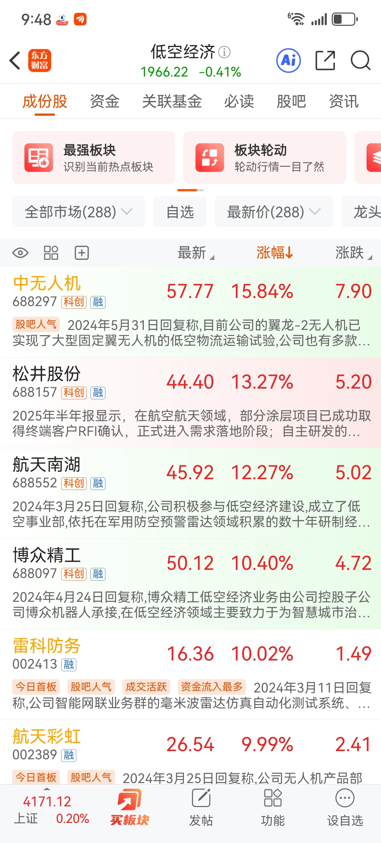 中无人机,航天彩虹大涨,赛为持续看好,A股第三支无人机成品军工股。某管短线波动,