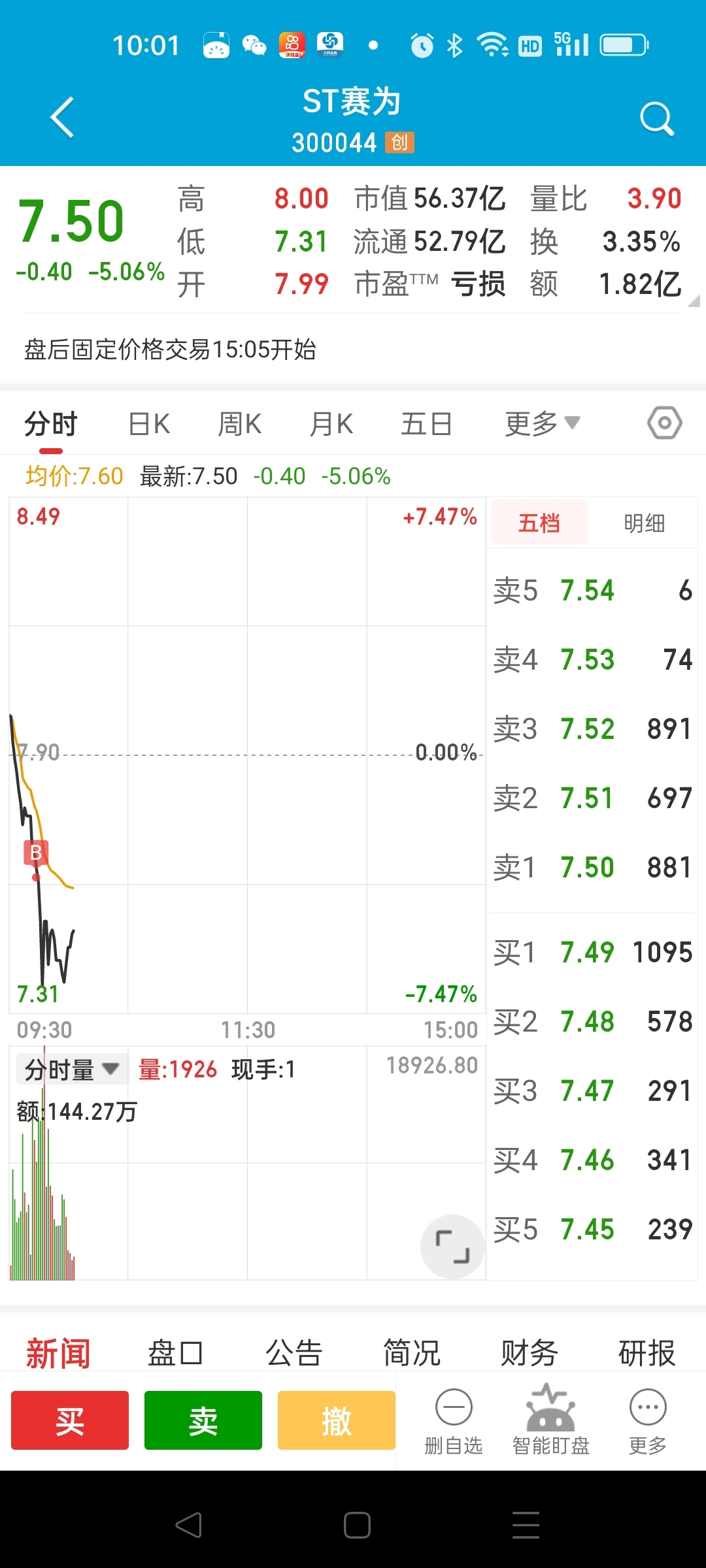 $ST赛为(SZ300044)$ 唉,底抄早啦
