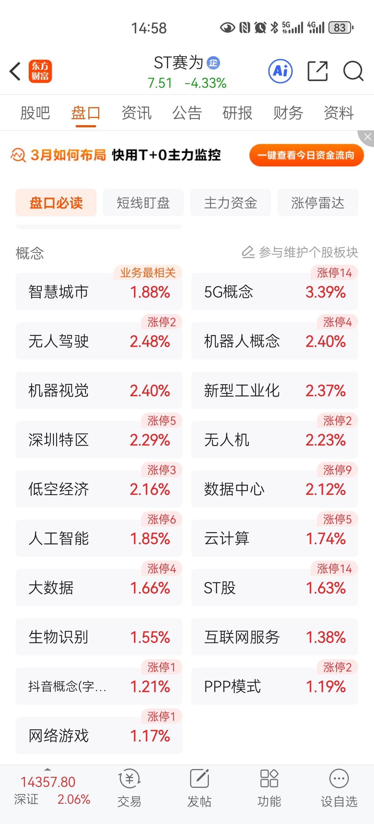 $ST赛为(SZ300044)$ 今天逆市暴跌近5%,整个A股5493只股赛便跌幅排名69。超过99.99%的股票。昨天暴跌近3%,跌幅超过5000股。这才是赛便的常态,赛便去年一年240个交易日,跌幅超过99%的股票就有210天。真正的A杀开始了,没有无缘无故的暴跌。赛便今天的走势已经说明必退市了。