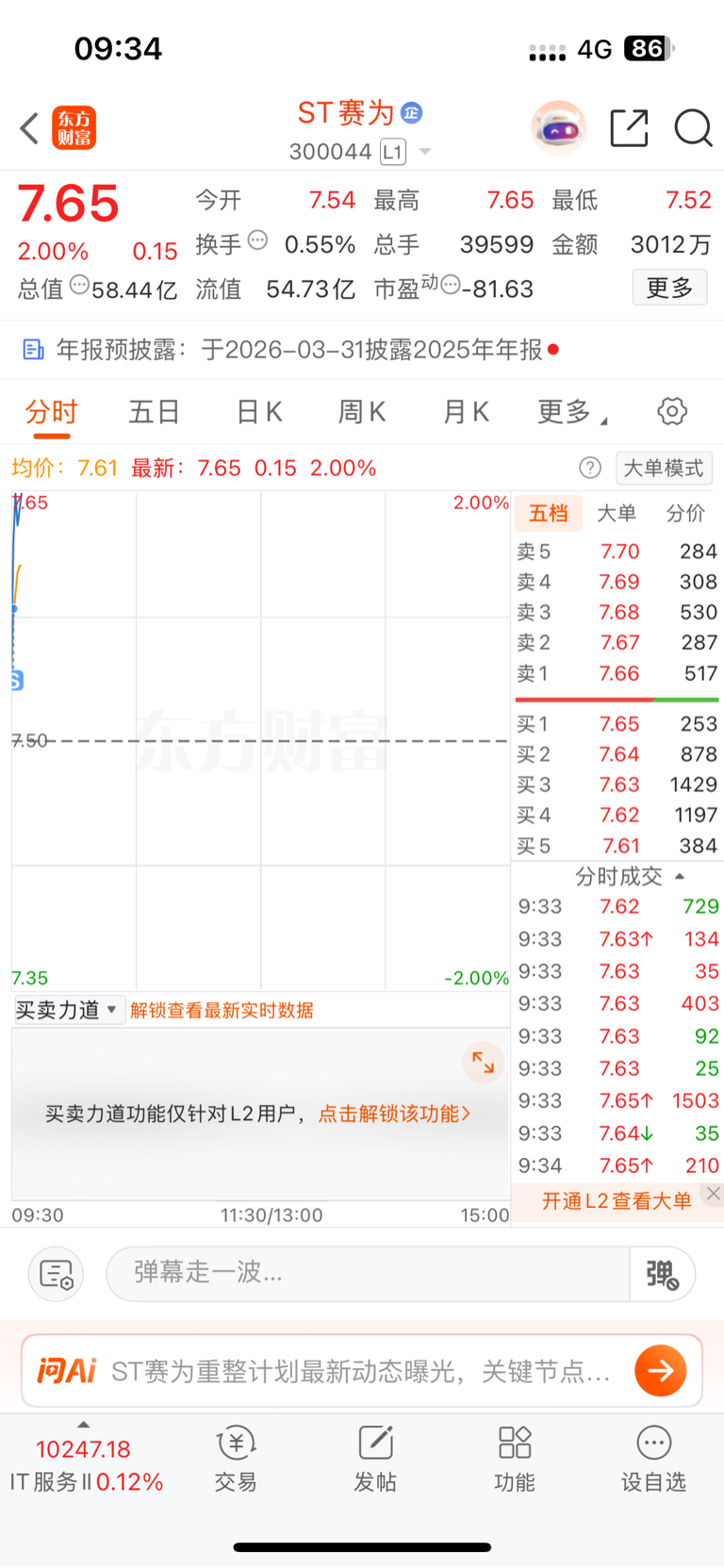 $ST赛为(SZ300044)$ 胆小把昨天6.9加仓的卖了先,等它下来再补