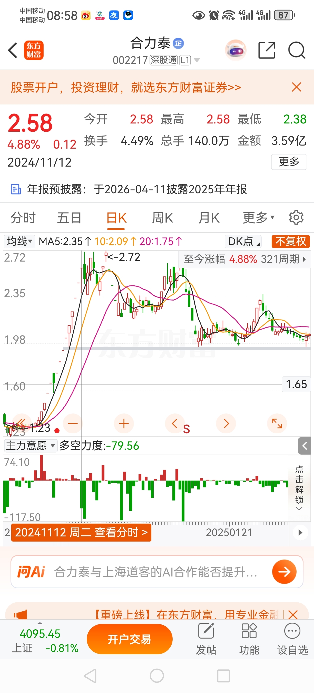合力泰之前重整开遴选投资人会议的时候开始启动涨停到签署协议前几个交易日股价翻倍停