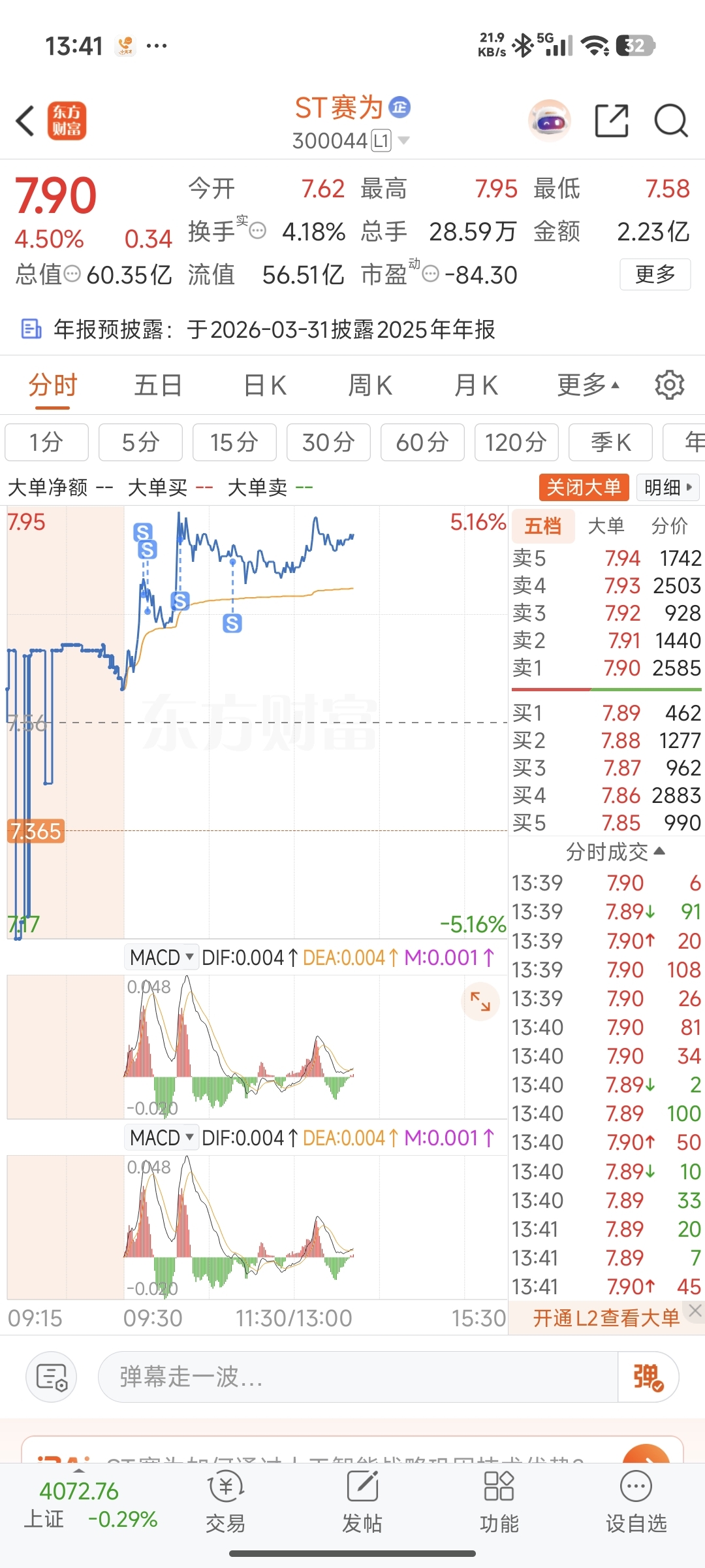 $ST赛为(SZ300044)$ 今天难道T不回来了么?