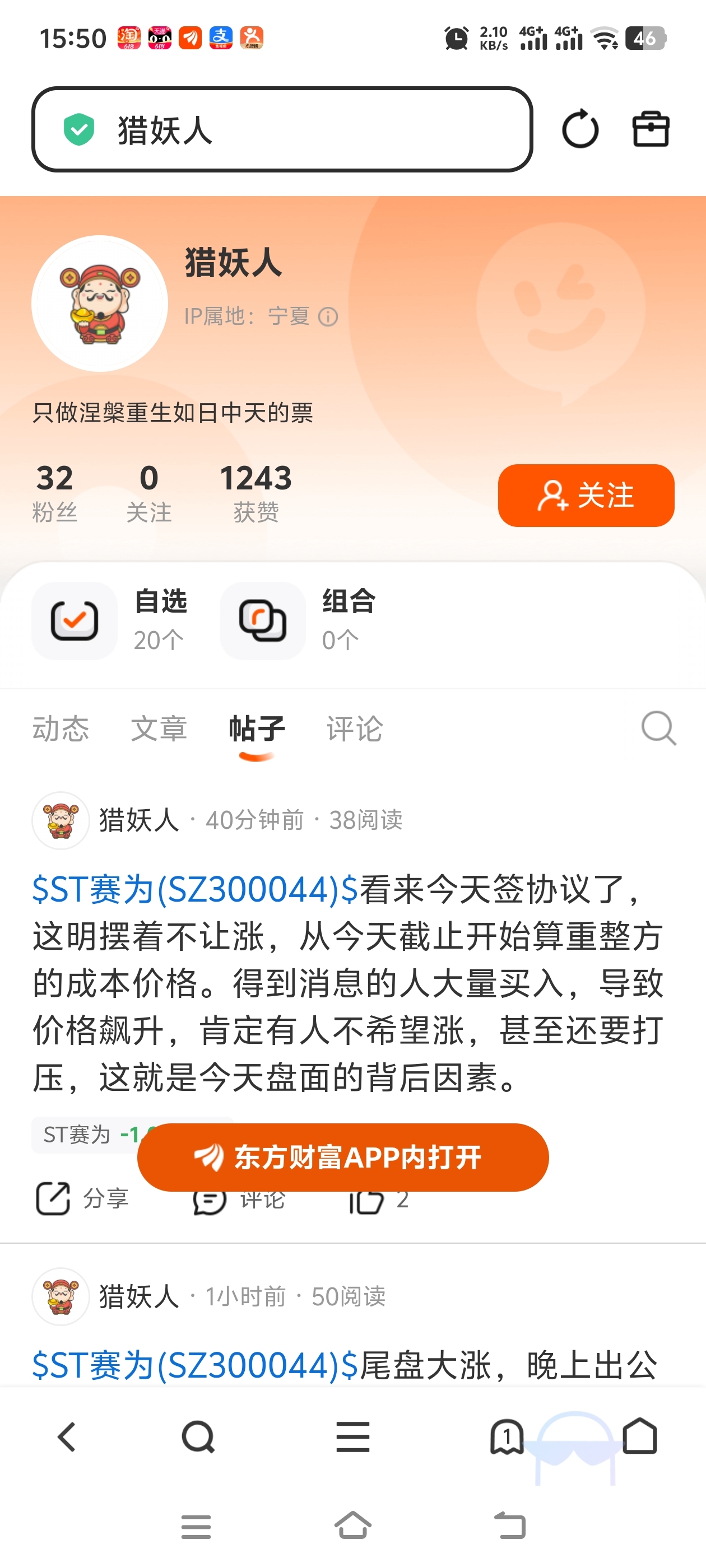 温馨提示: 1.根据《证券法》规定,禁止编造、传播虚假信息或者误导性信息,扰乱证券市场;2.用户在本社区发表的所有资料、言论等仅代表个人观点,与本网站立场无关,不对您构成任何投资建议。用户应基于自己的独立判断,自行决定证券投资并承担相应风险。《东方财富社区管理规定》
