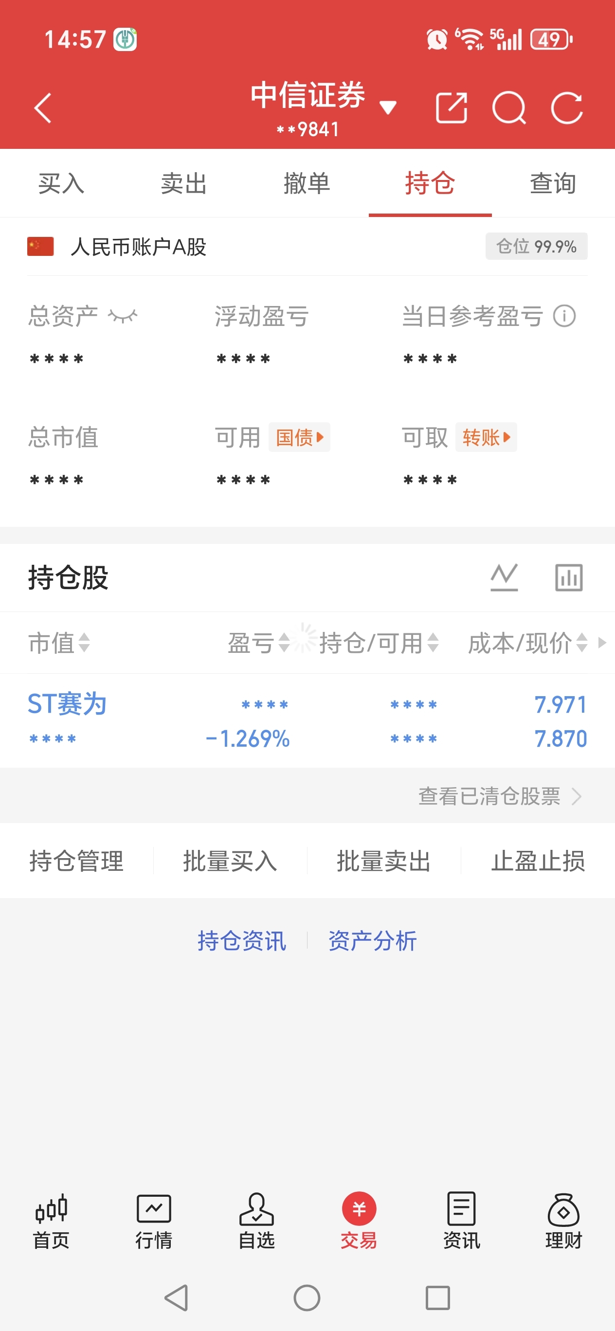 $ST赛为(SZ300044)$ 任你风吹雨打,任你海阔天空,明天开始,死拿不交易了,看到60,挂单59.9卖出,全仓单吊不打野,炒股以来,亏掉了百分之九十二,所有能动的身家都压你,不在加减仓,靠你回血了,经历过哈工智能的我还有什么好怕的,为自己的认知买单。