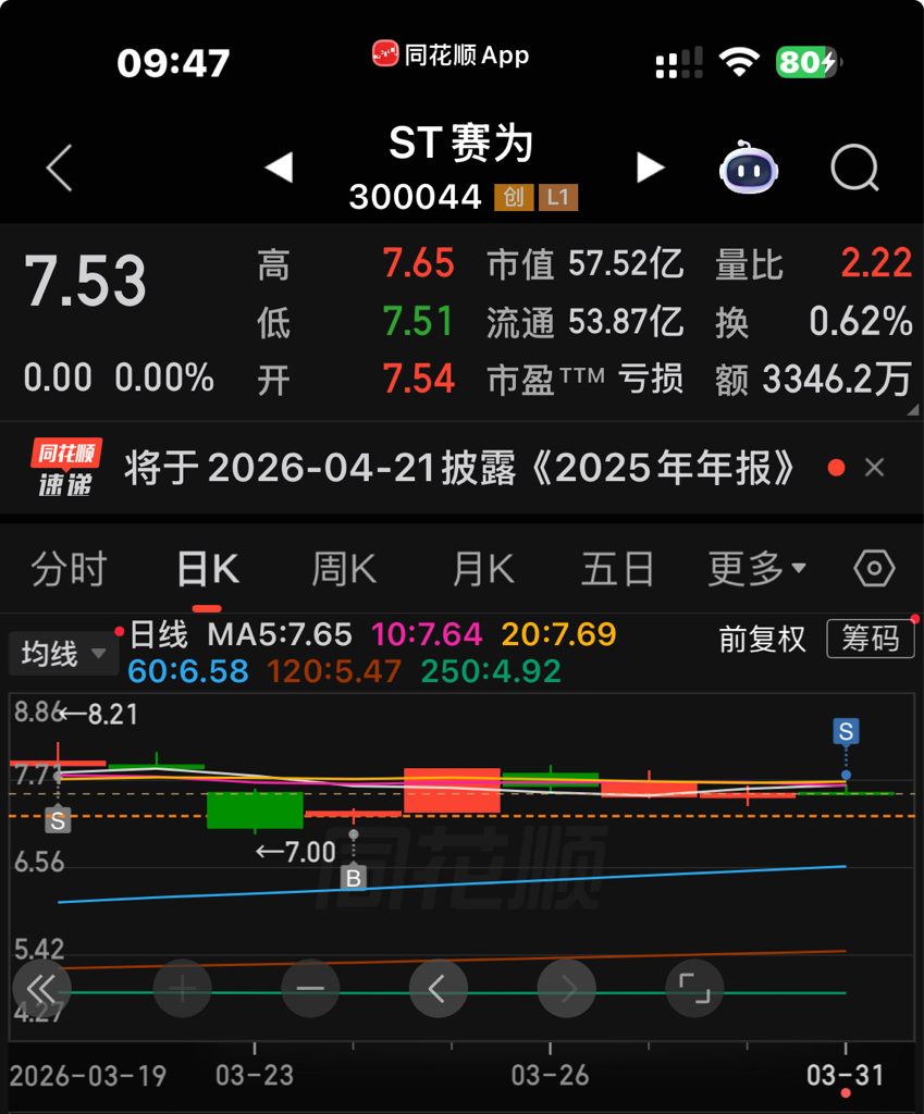 $ST赛为(SZ300044)$ 今天全部抛了,一股不留,买卖两次小赚,这太磨人了,走势太弱和其他重整股没法比,一直等不到正式重整消息,祝留下的发财!