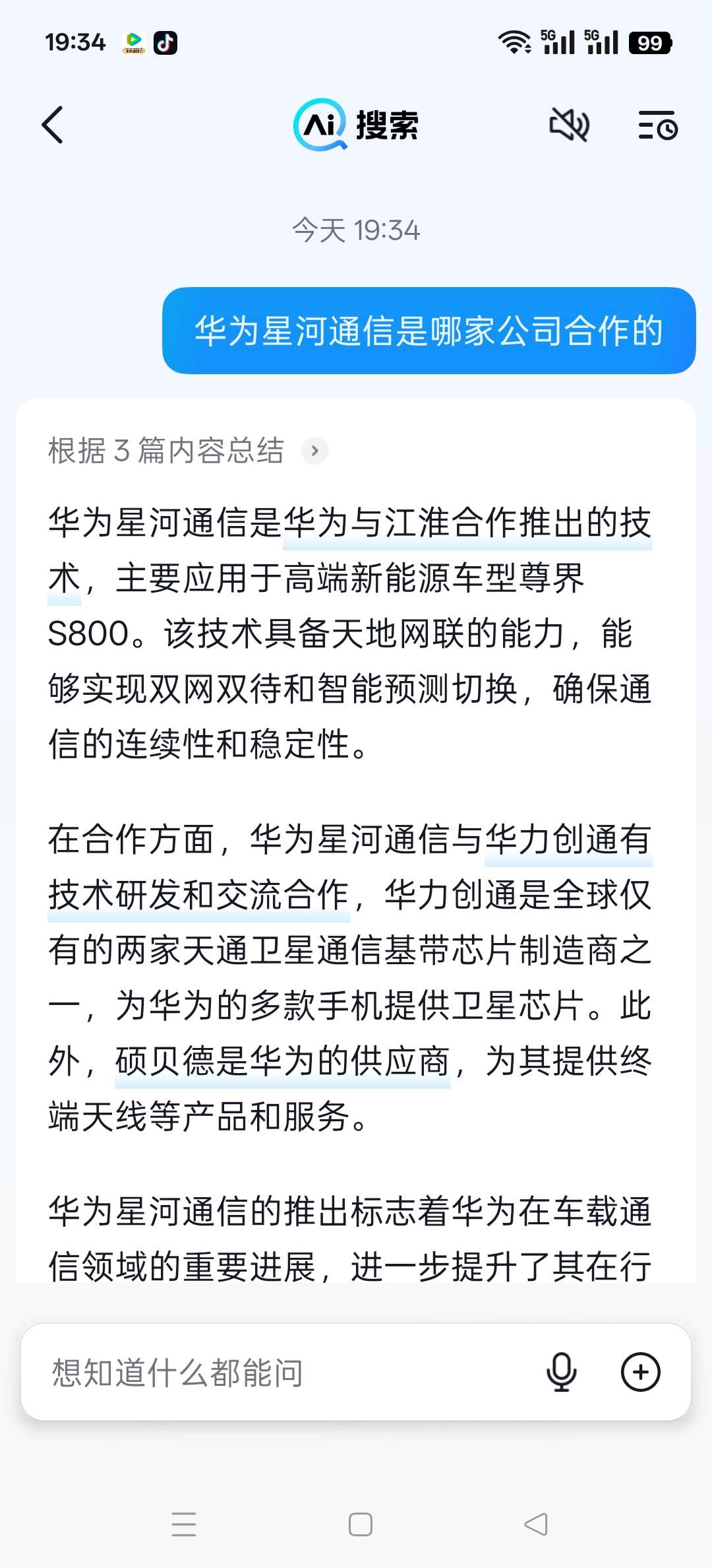 华为星河通信是华为与江淮汽车合作推出的车载通信系统,具备天地网联的能力,旨在提供