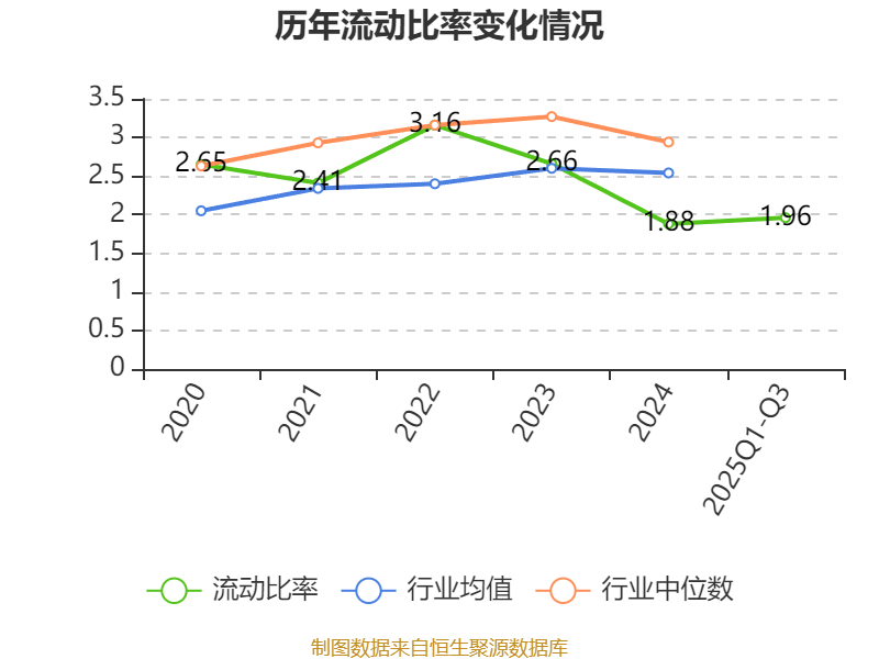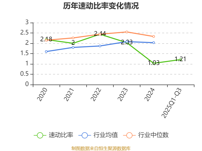 2025年前三季度,公司流动比率为1.96,速动比率为1.21。