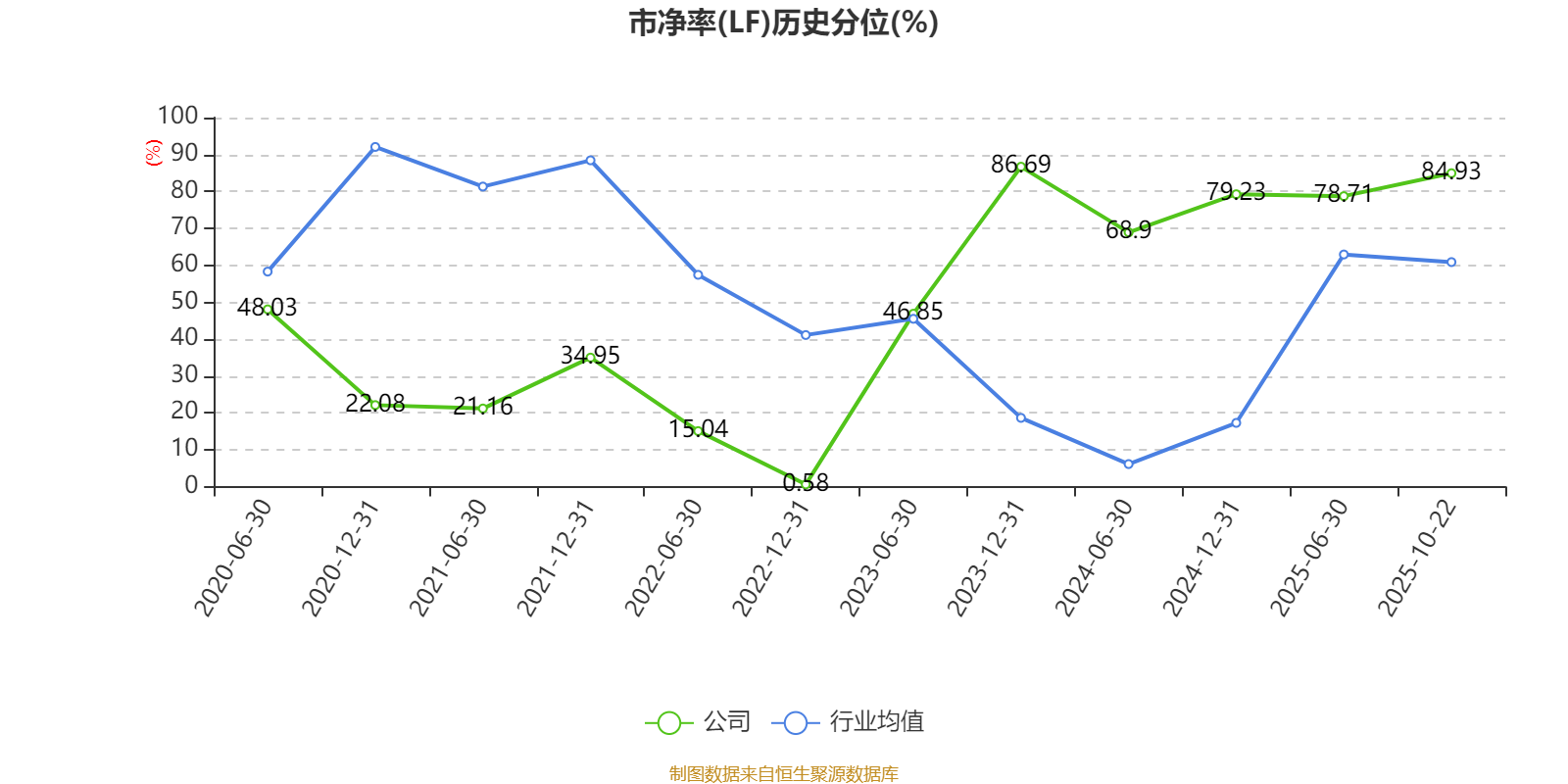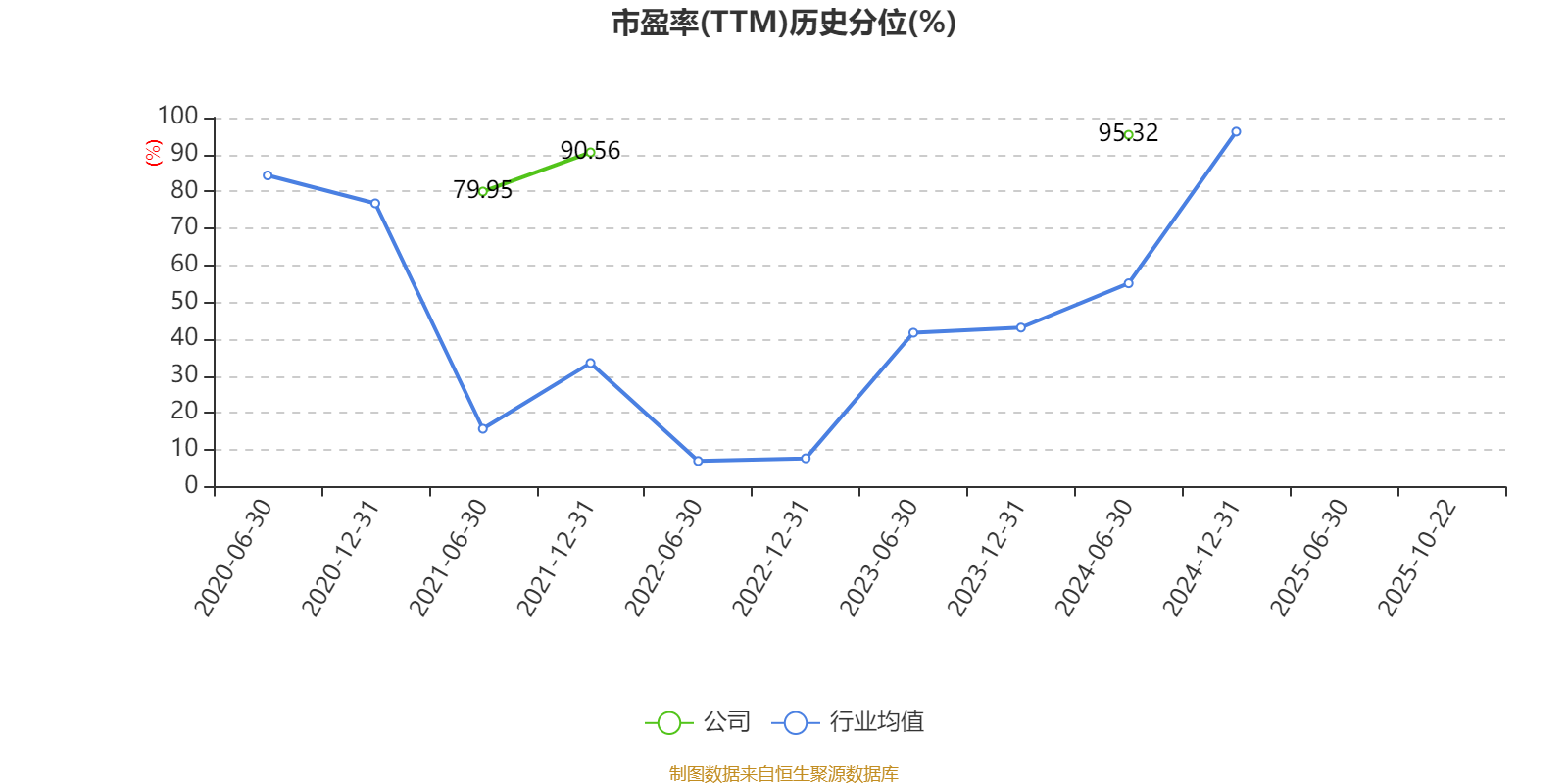 市盈率、市净率为负时,不显示当期分位数,会导致折线图中断。