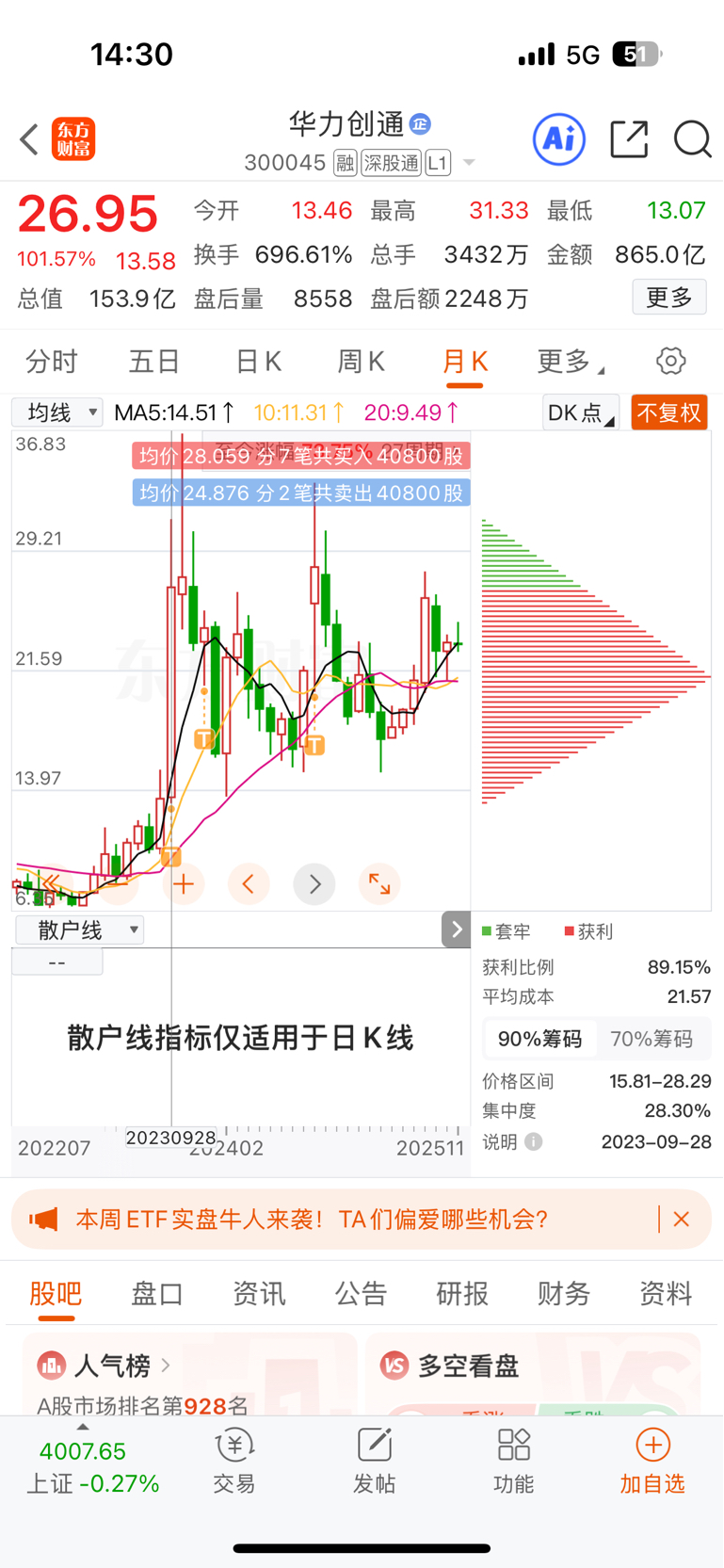 $华力创通(SZ300045)$ 老韭菜安慰一下你们
