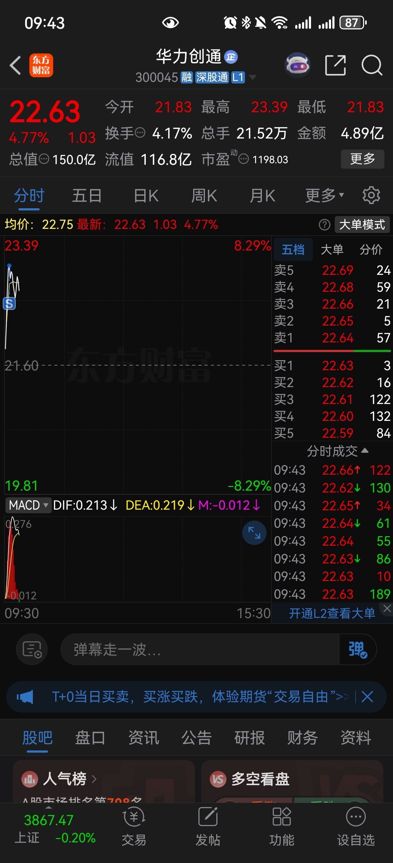 $华力创通(SZ300045)$ 听股吧股友的话,祖训,高开就跑。。。。