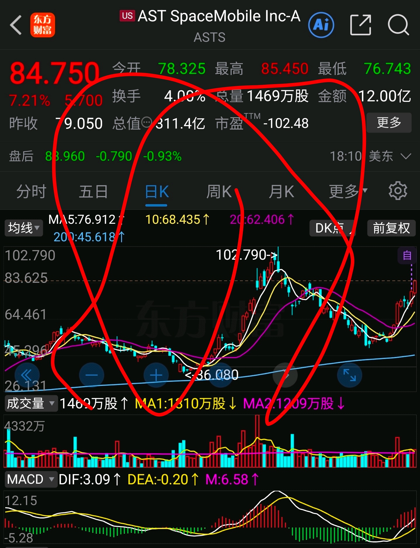 $华力创通(SZ300045)$ 看看老美asts又是大涨