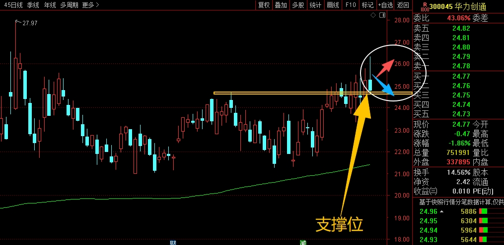 $华力创通(SZ300045)$ 近期的反弹走势还不错,能够逐步震荡走高,接下来就看能否持续震荡向上,同时脚底横线作为短线支撑位看待,能稳住就没问题,但有效跌破就要注意短线的回落调整走势,注意控制仓位应对。