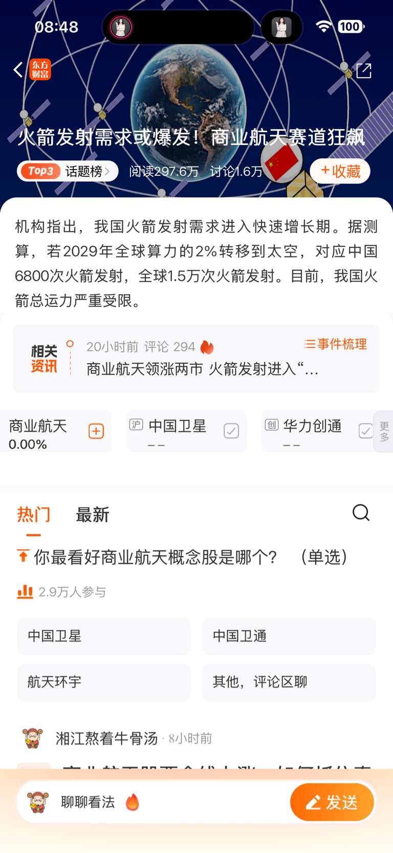 $华力创通(SZ300045)$ 商业航天排名第二,仅次于中国卫星,昨天不会卖飞了吧?感觉要起飞,今天不会涨停吧?早上能追吗?怎么操作好?好着急