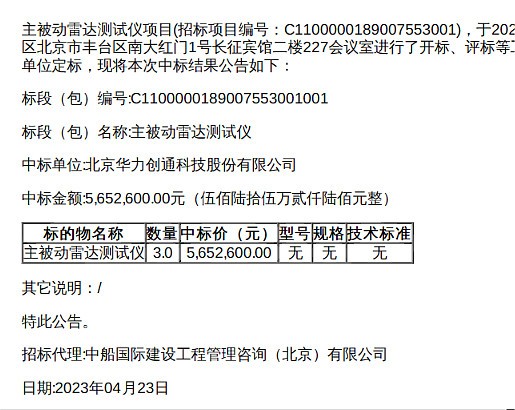 华力创通:中标西安电子科技大学毫米波雷达成像系统