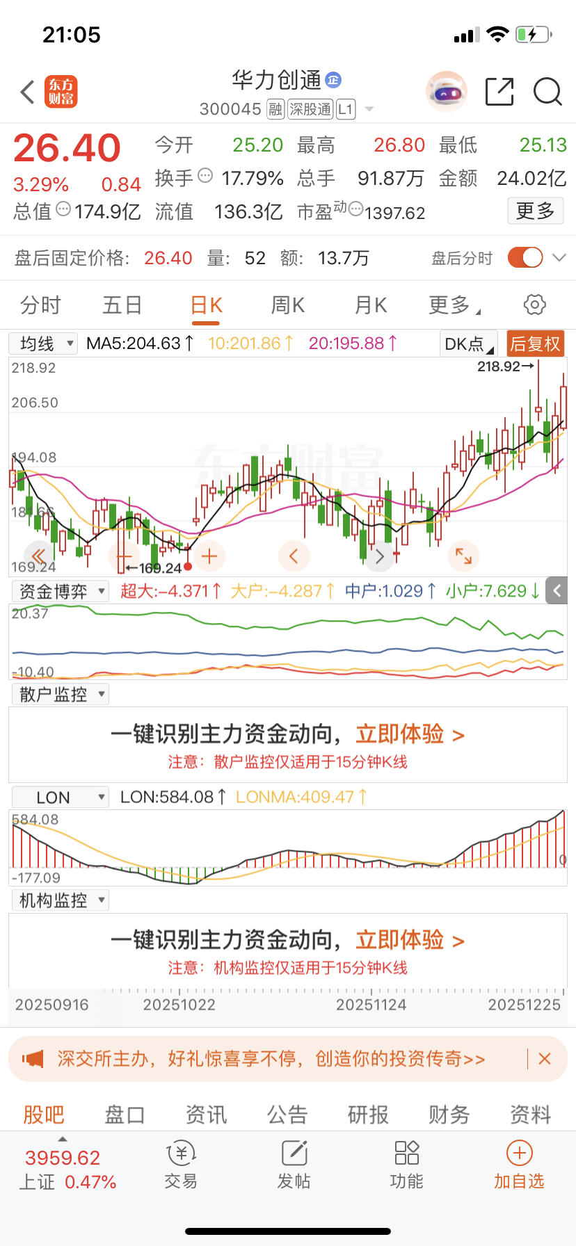 $华力创通(SZ300045)$ 各位家人听我一句劝这么大的军工利好,华力明天不涨停就该抛弃调仓换股操作了,说明此股已背量化操纵当韭菜地了。看看这日K的上下针,我要家的针线盒都没针多。难道你们要在这里躲牛市马?