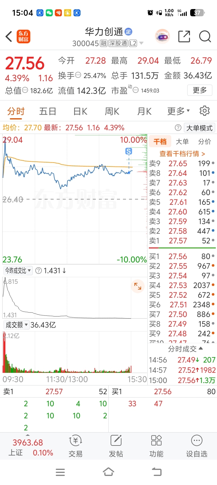 $华力创通(SZ300045)$ 走了,主力太恶心,早上不应该格局