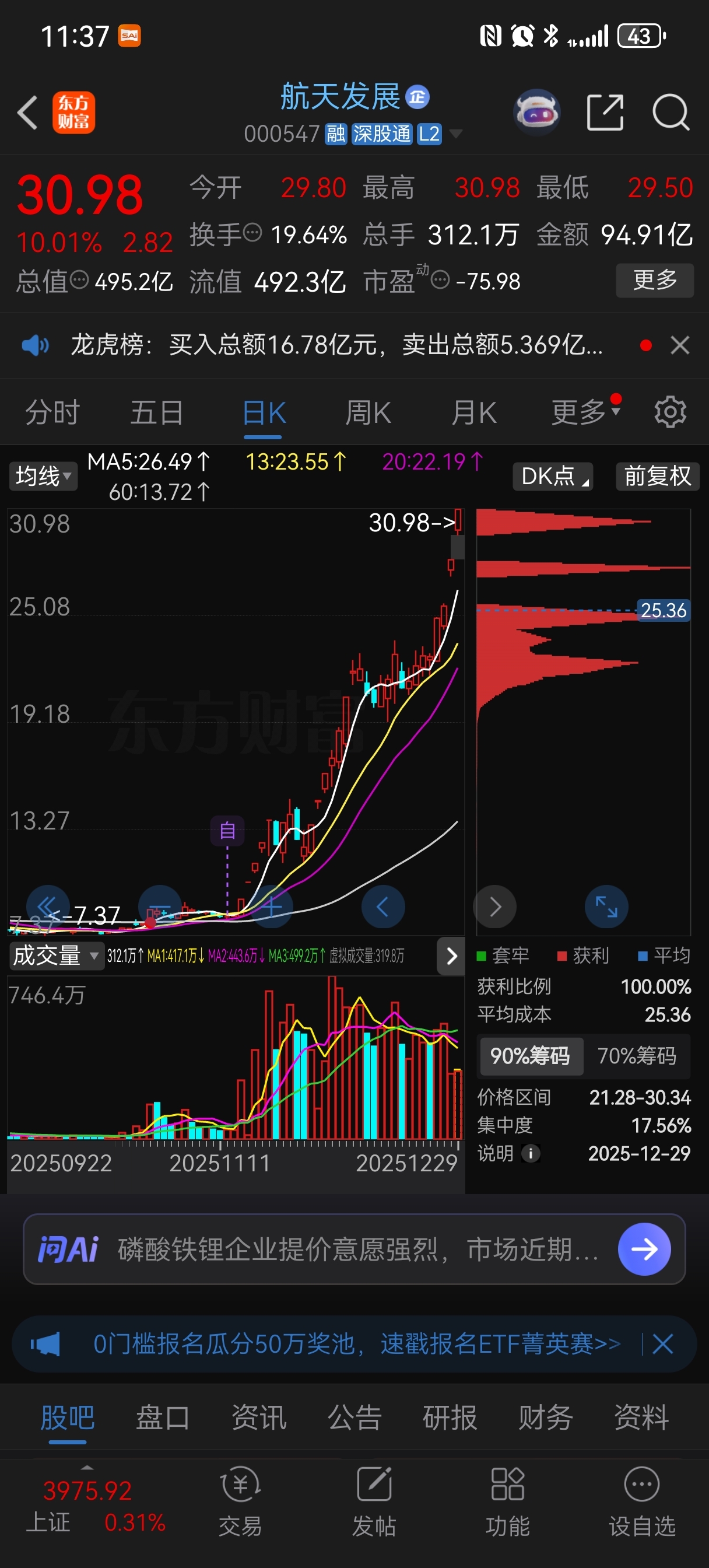 和航天发展同一天加的自选,航天发展那时候8块,现在32块,四倍了。。。你特么一点