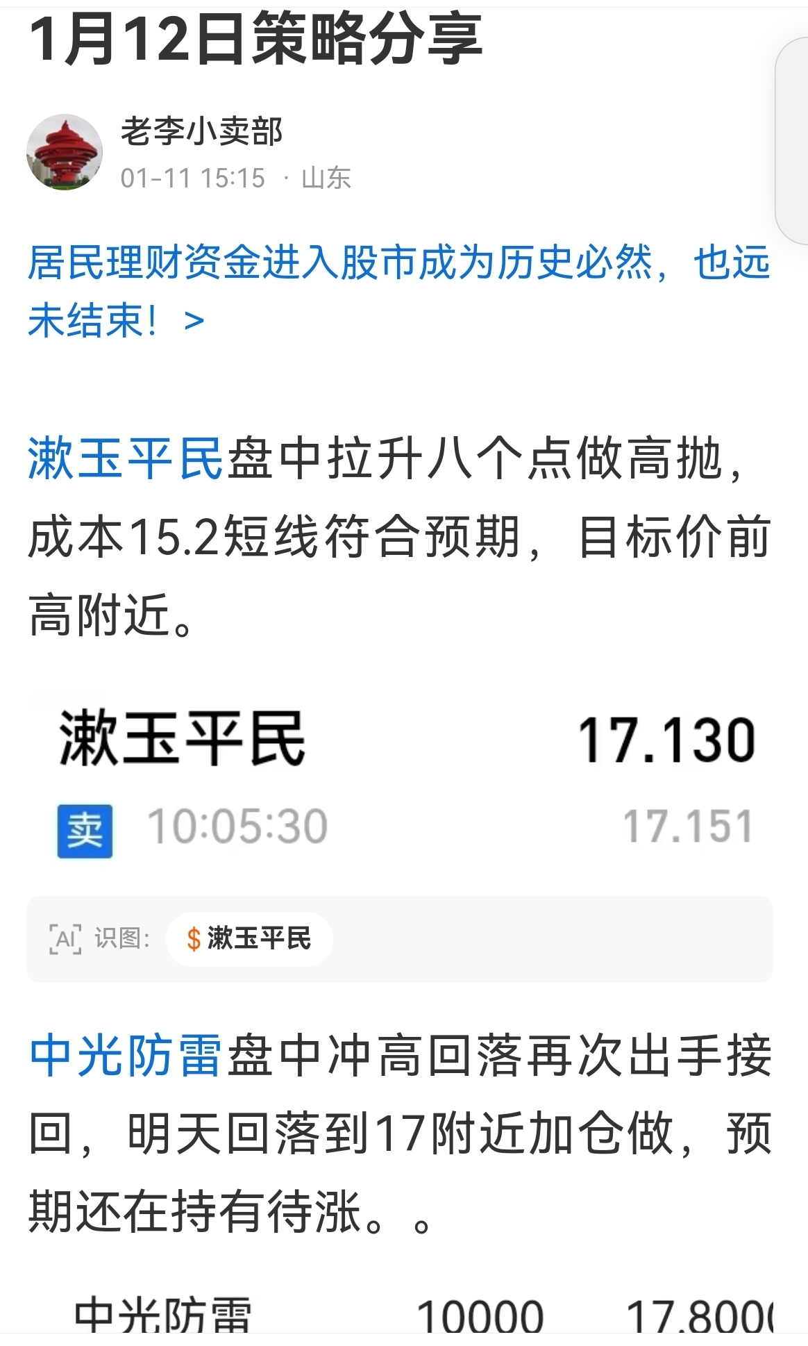 $华力创通(SZ300045)$ 没卖在高点,等待回落再次出手,详见12日策略分享及组合变化