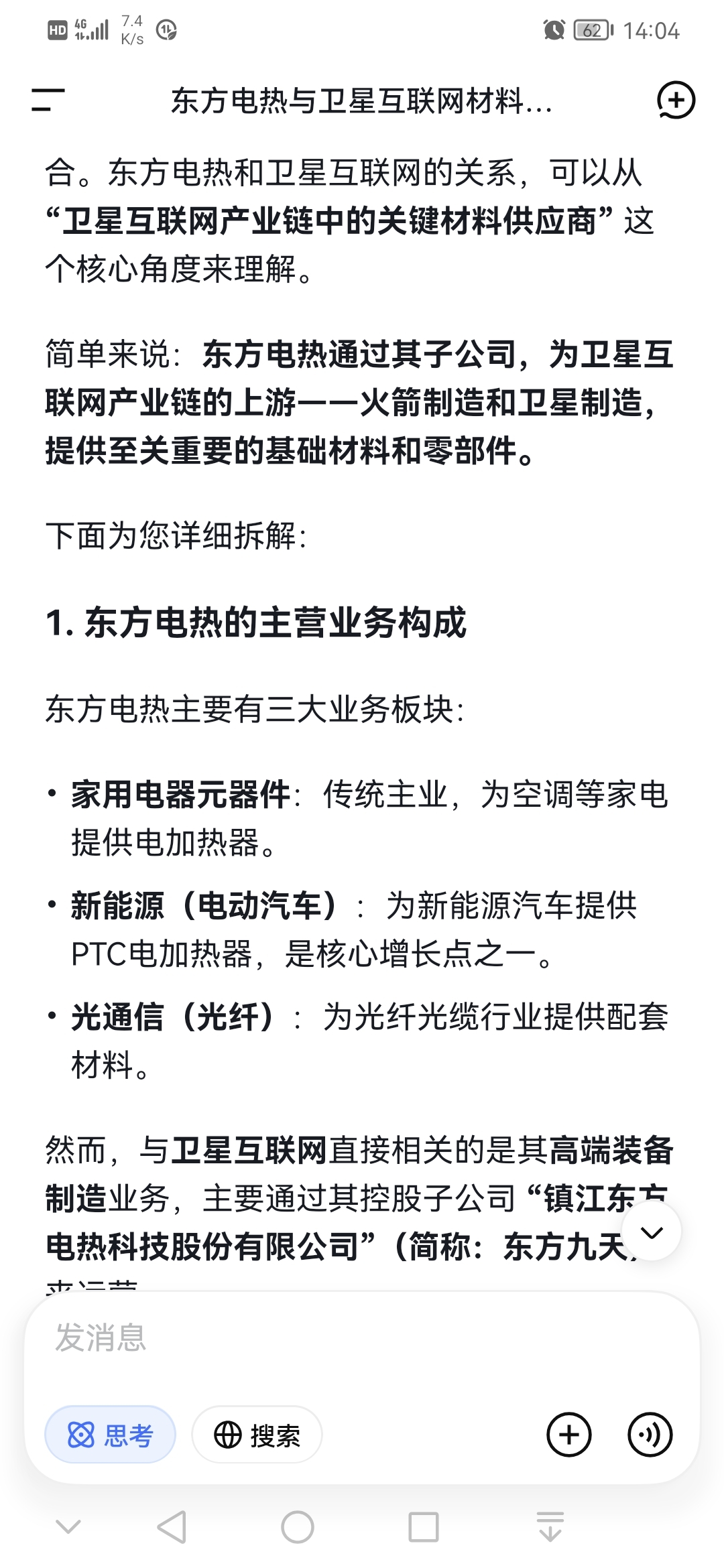 东方电热300217是卫星互联网产业重要的材料供应商