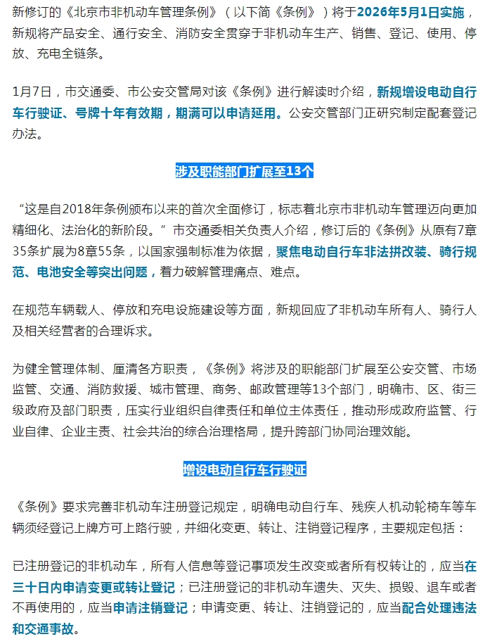 事关北京非机动车,有新规!电动自行车也要办行驶证了——日期:2026-01-09