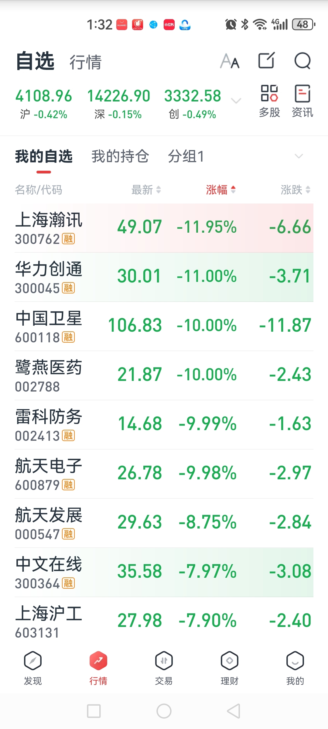 $华力创通(SZ300045)$ 自选股倒数第一