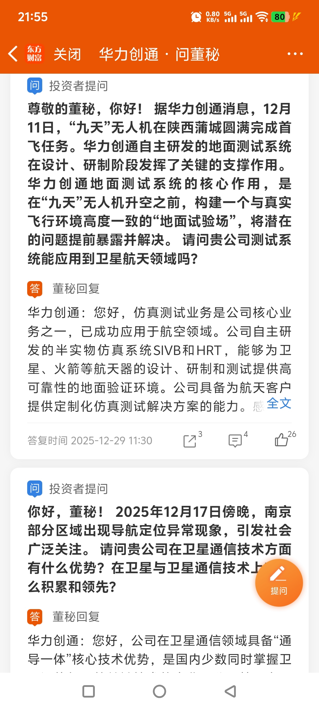 12月29日董秘问答(截图如下)仿真测试业务是公司核心业务之一,已成功应用于航空